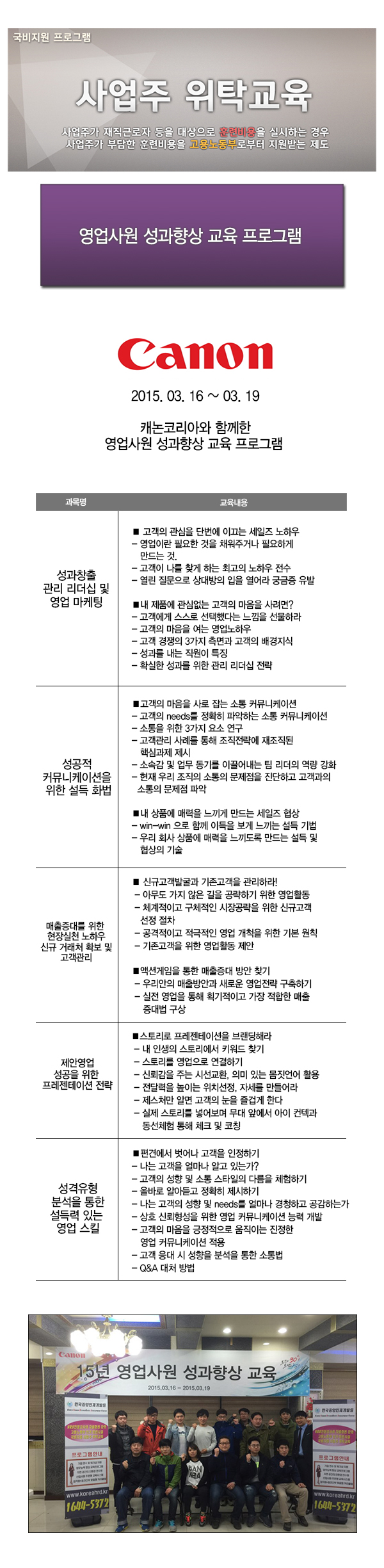 2015. 03. 16 ~ 03. 19 캐논코리아 영업사원 성과향상 교육 프로그램