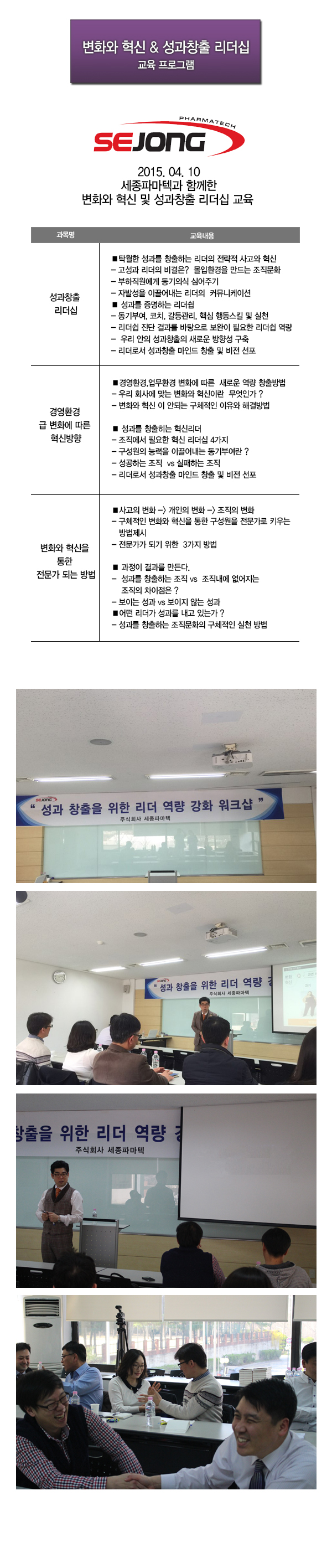 2015.04.10. 세종파마텍 변화와 혁신 및 성과창출 리더십 교육 프로그램