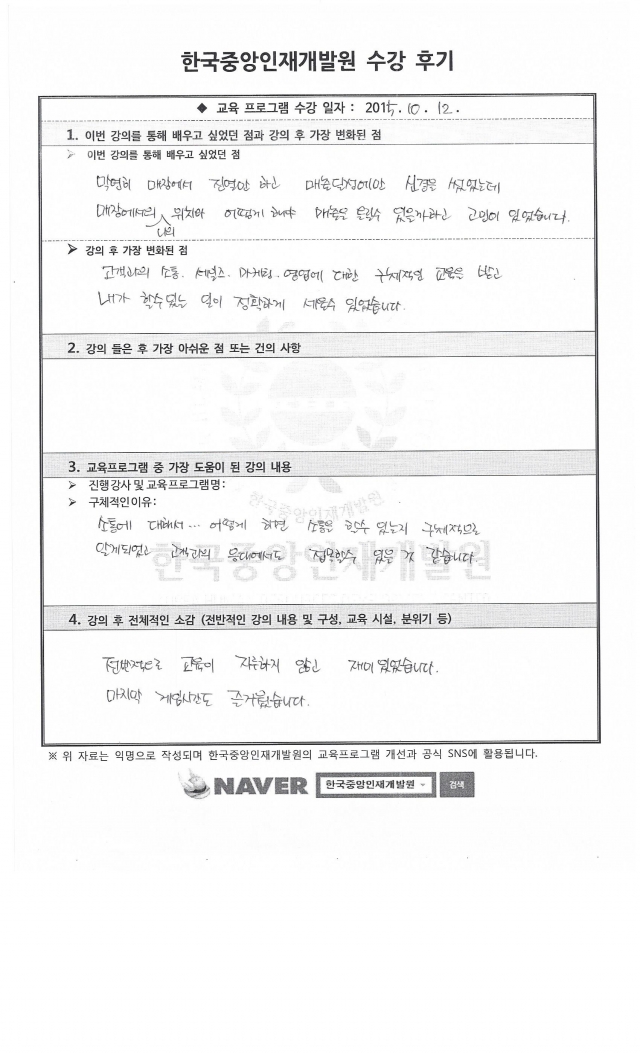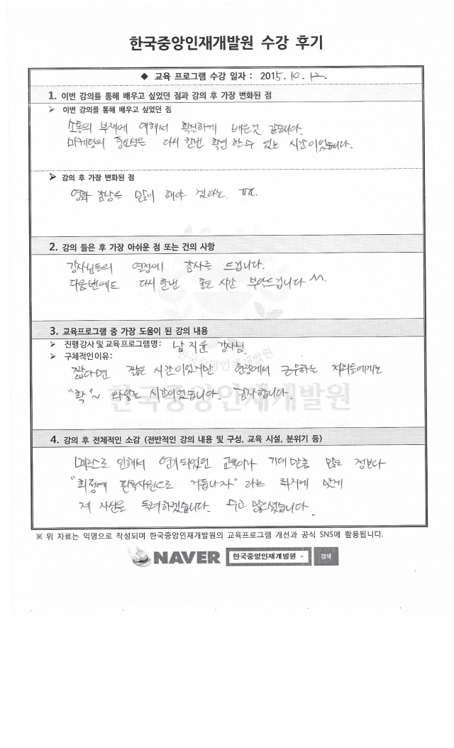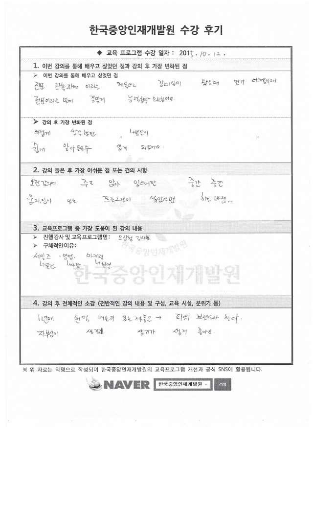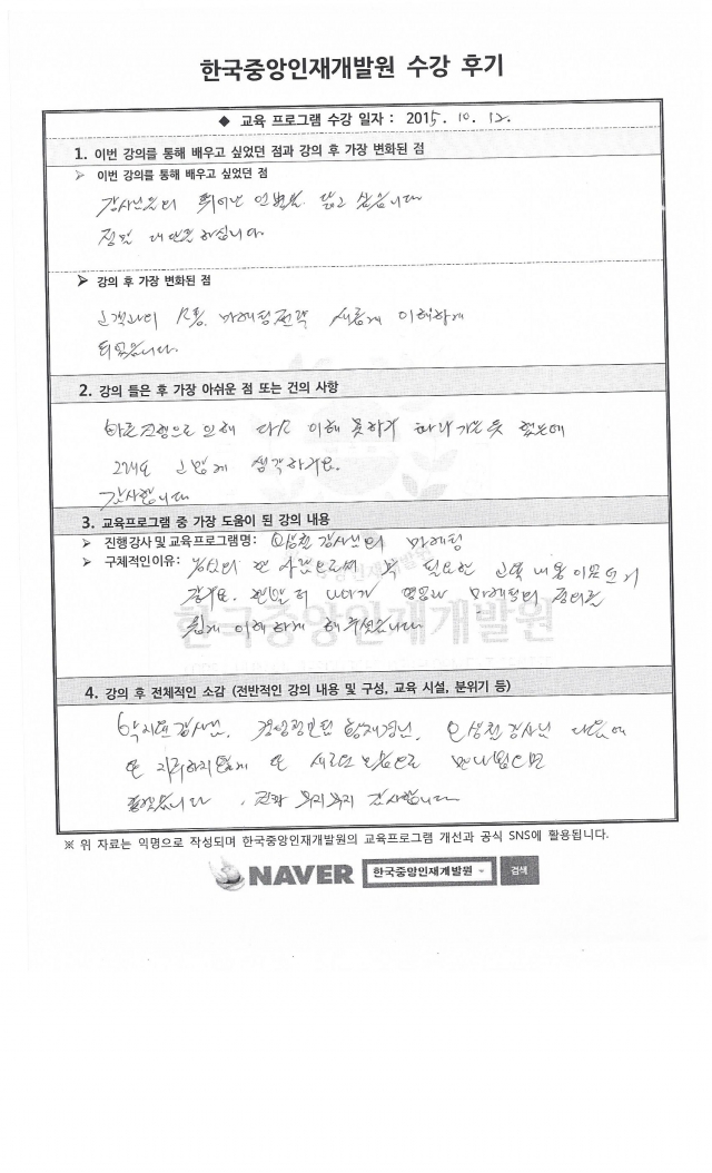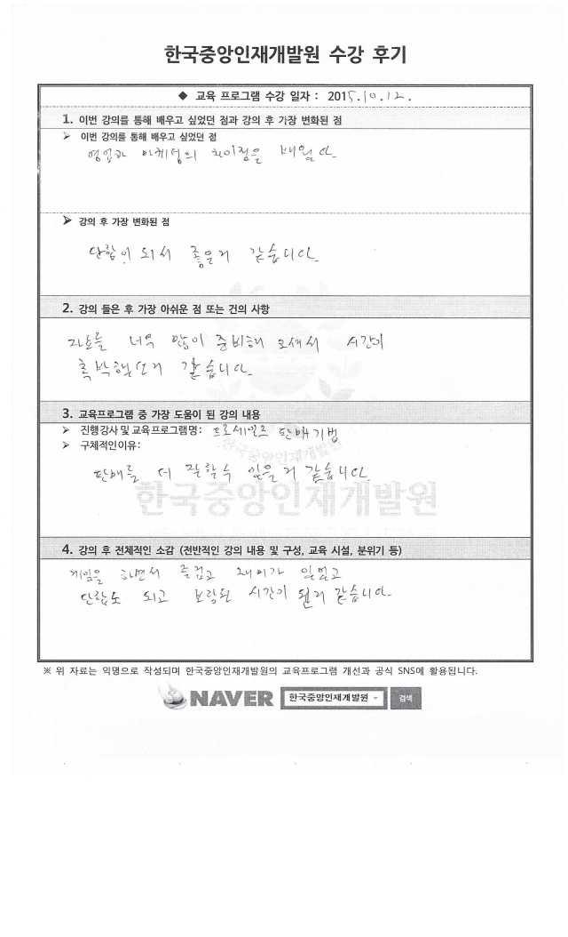 교육프로그램 중 가장 도움이 된 강의 내용