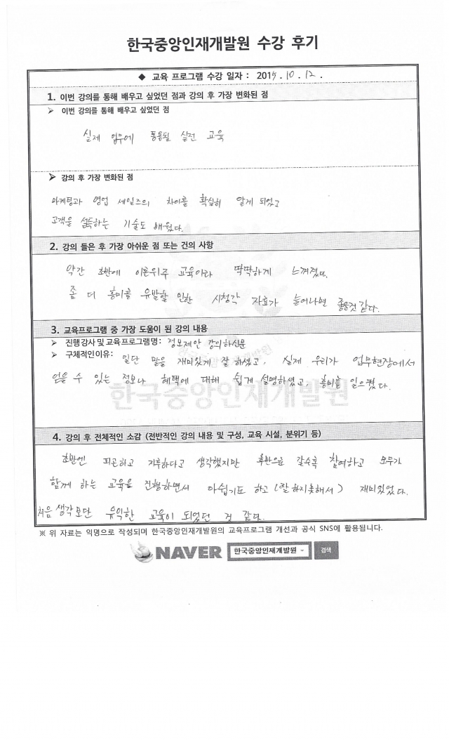 2015.10.7~8 / 10.12~13 농심 4차,5차 프로세일즈 판매기법 교육 프로그램