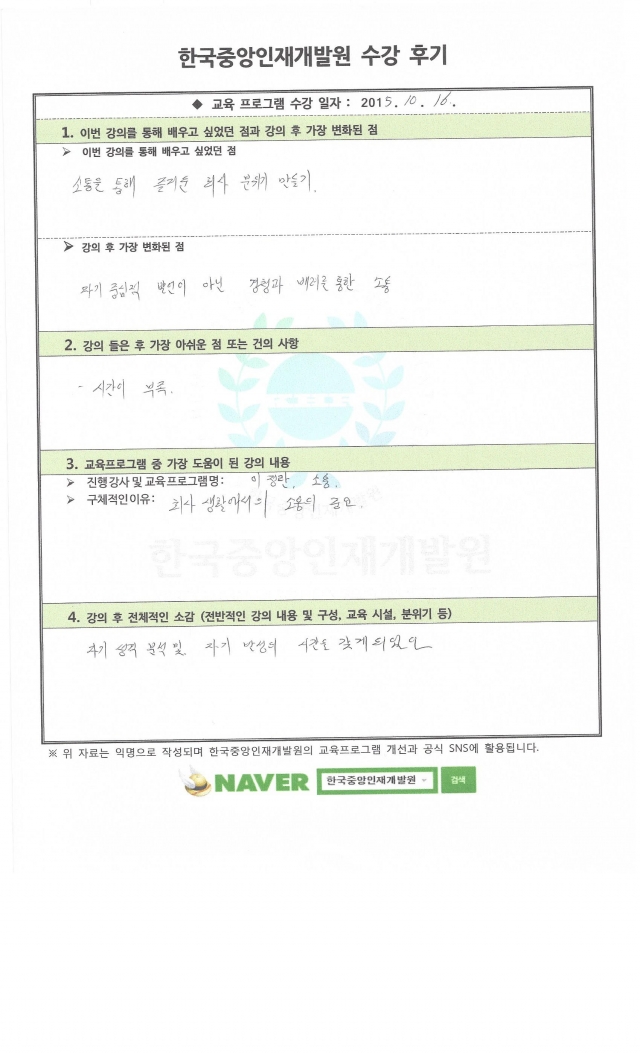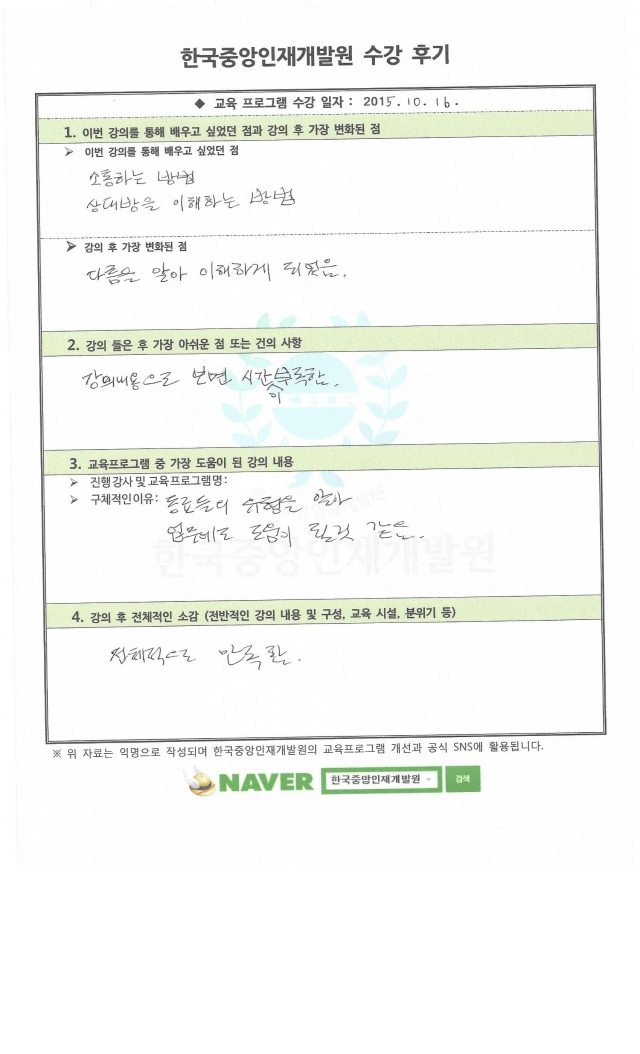 교육프로그램 중 가장 도움이 된 강의 내용