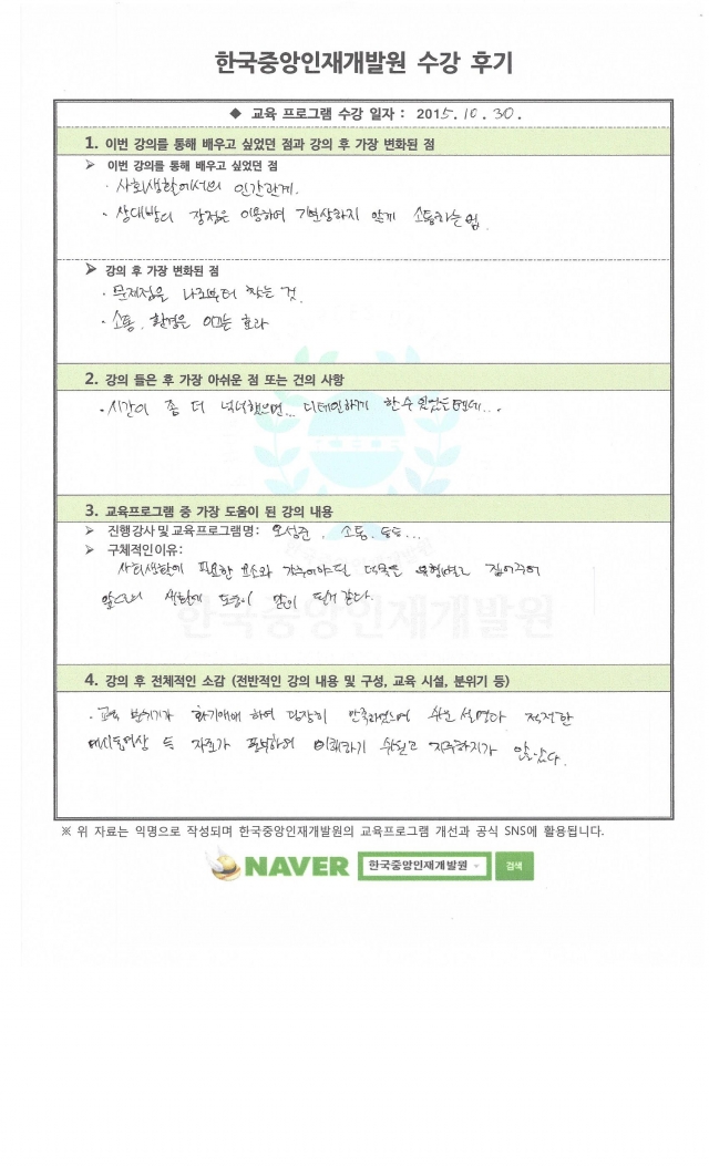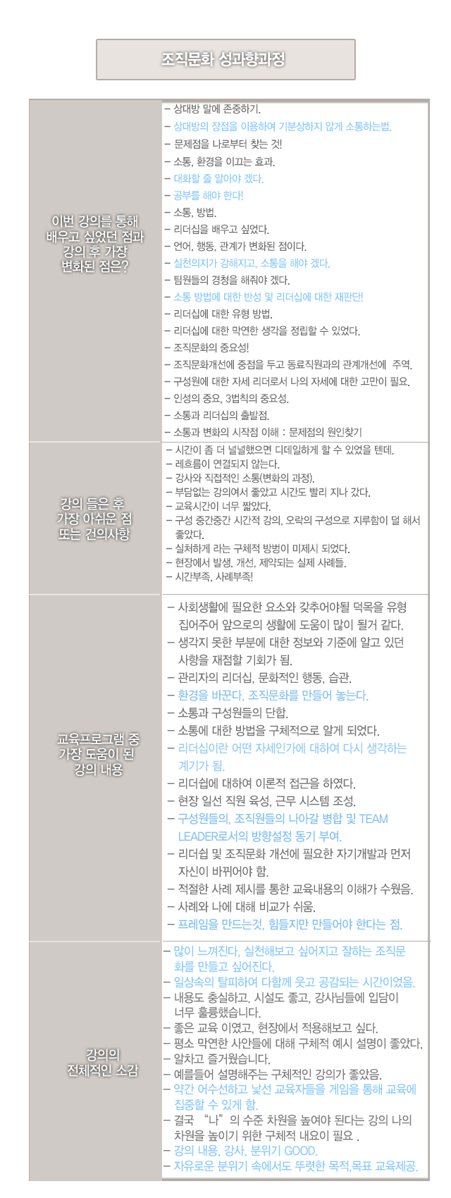 교육프로그램 중 가장 도움이 된 강의 내용