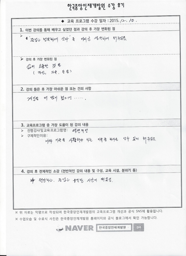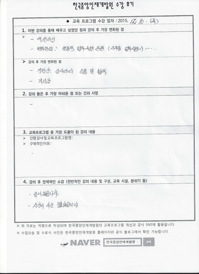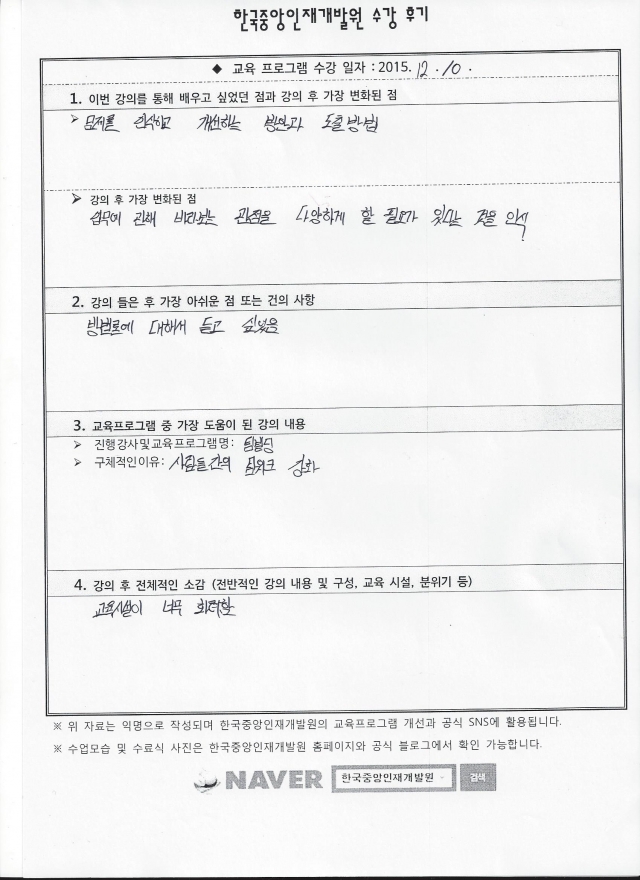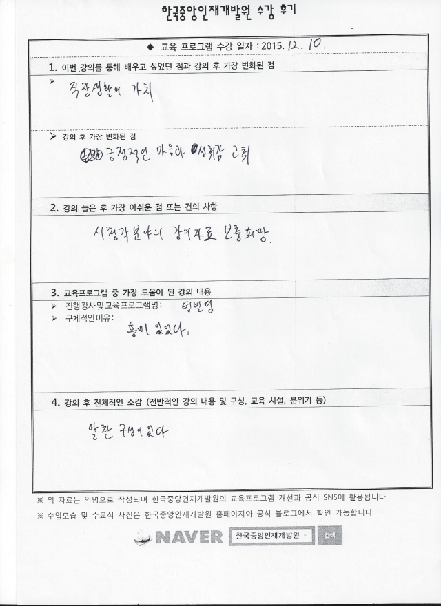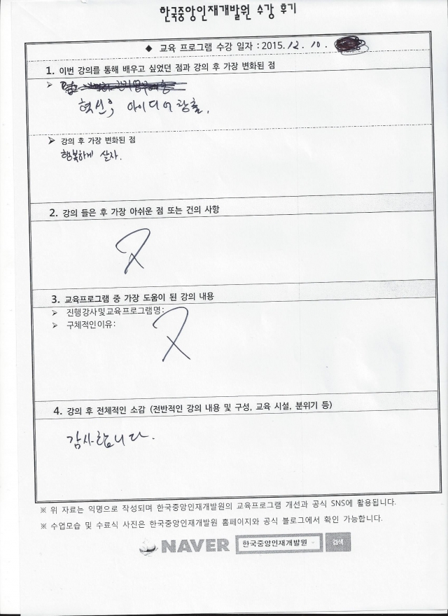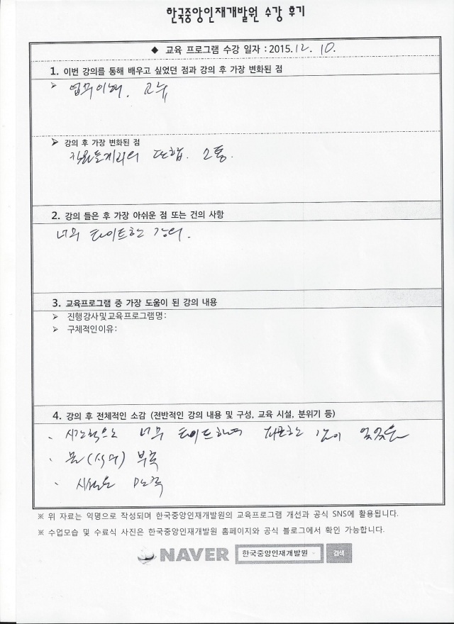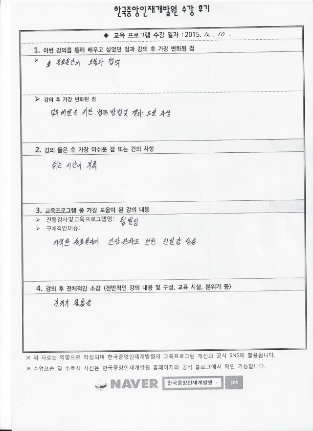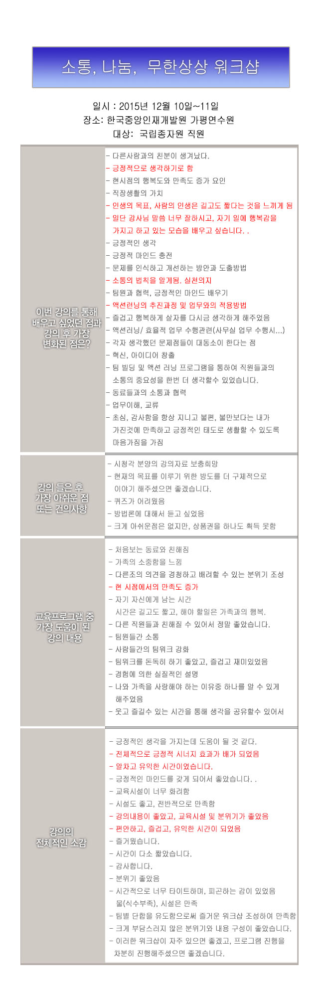 2015.12.10~11일 "국립종자원" 소통, 나눔, 무한상상 워크샵