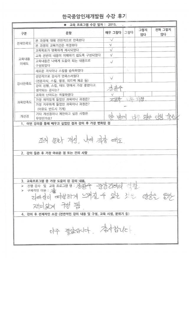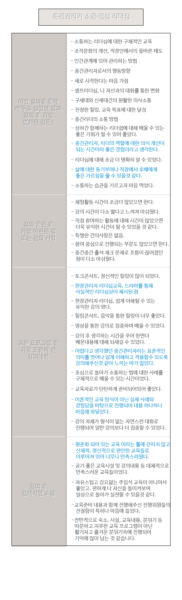 교육프로그램 중 가장 도움이 된 강의 내용
