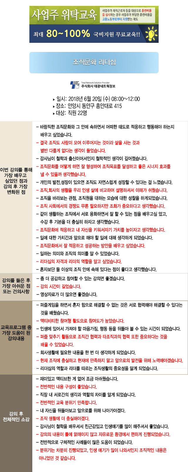 2018. 06. 20 "태광네트웍정보" 조직문화 리더십