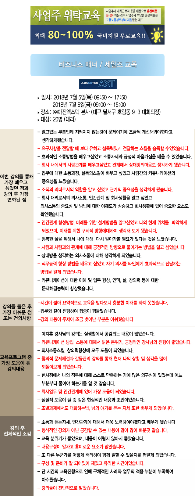 2018. 07. 05 ~ 06 "아진엑스텍" 팀장급 교육