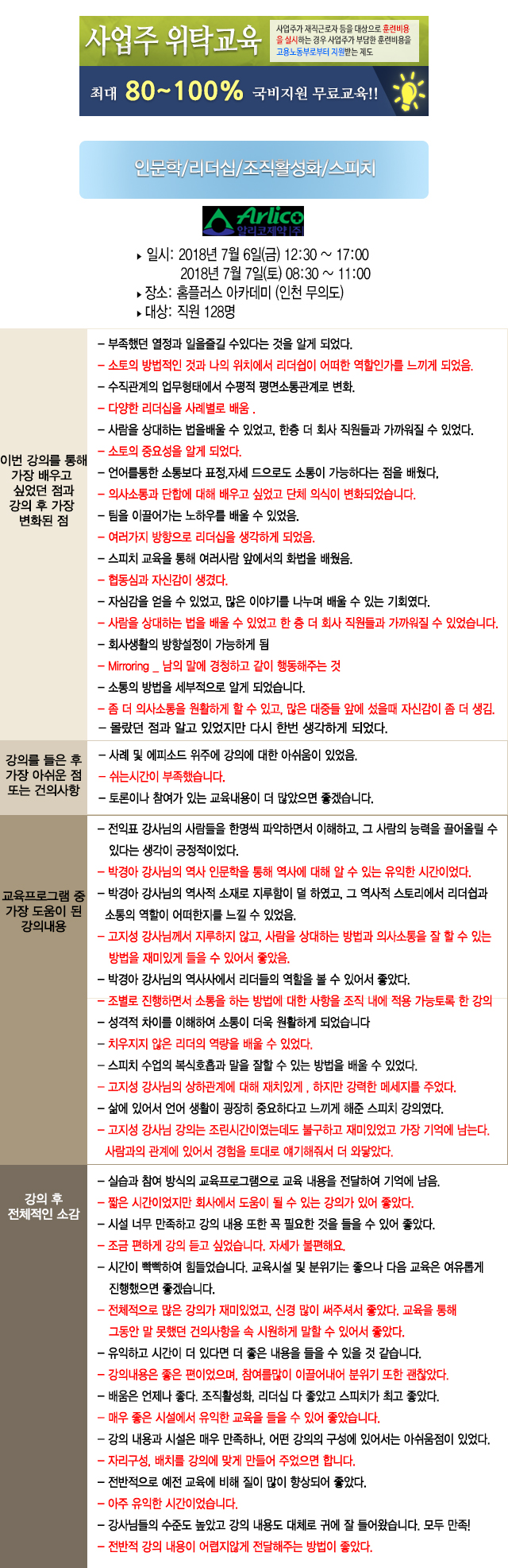 2018. 07. 06 ~ 07 "알리코제약" 조직활성화/리더십/인문학/스피치 교육
