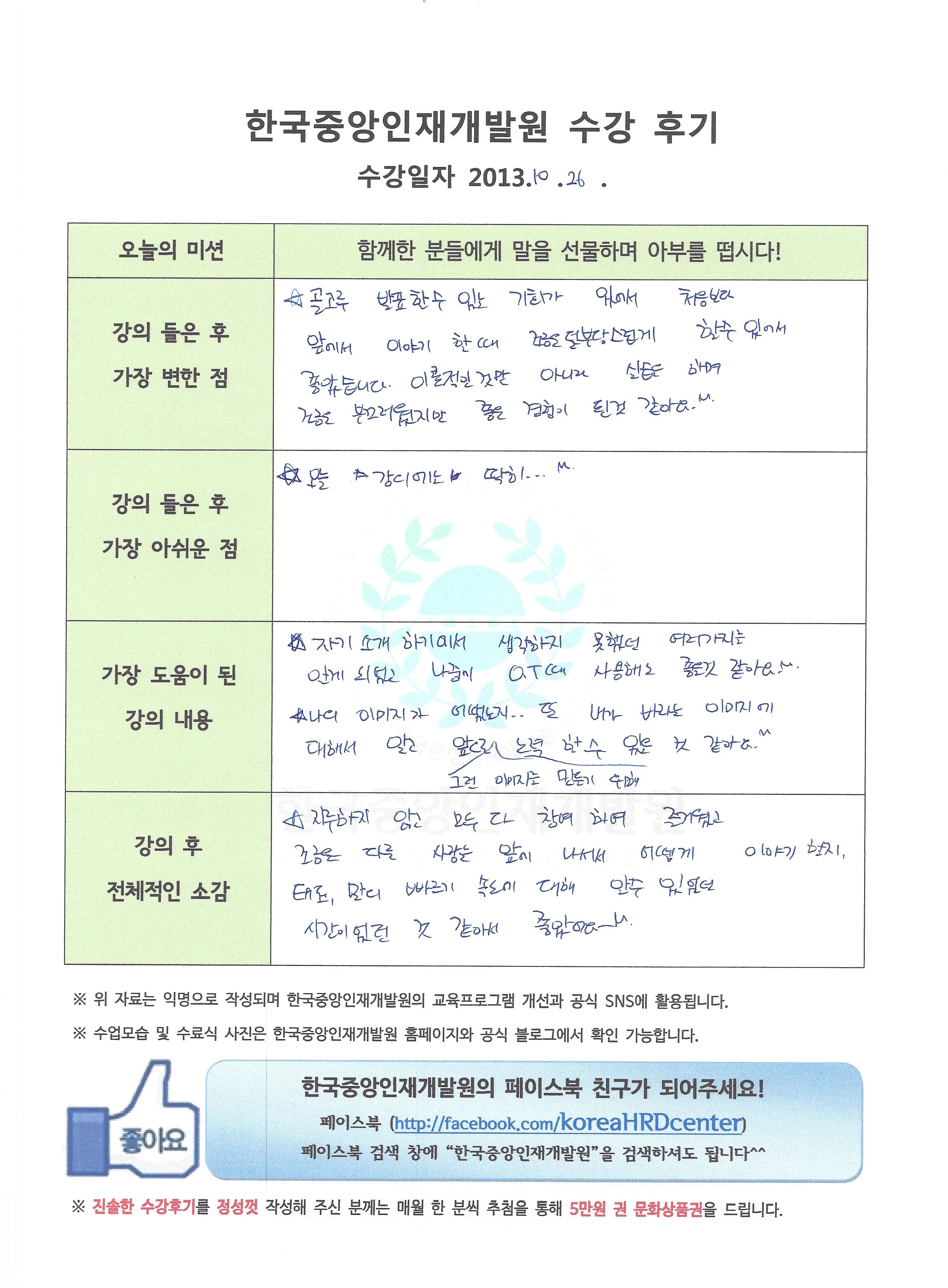 기업연수생들이 정성스럽게 손으로 작성한 진솔한 후기입니다.