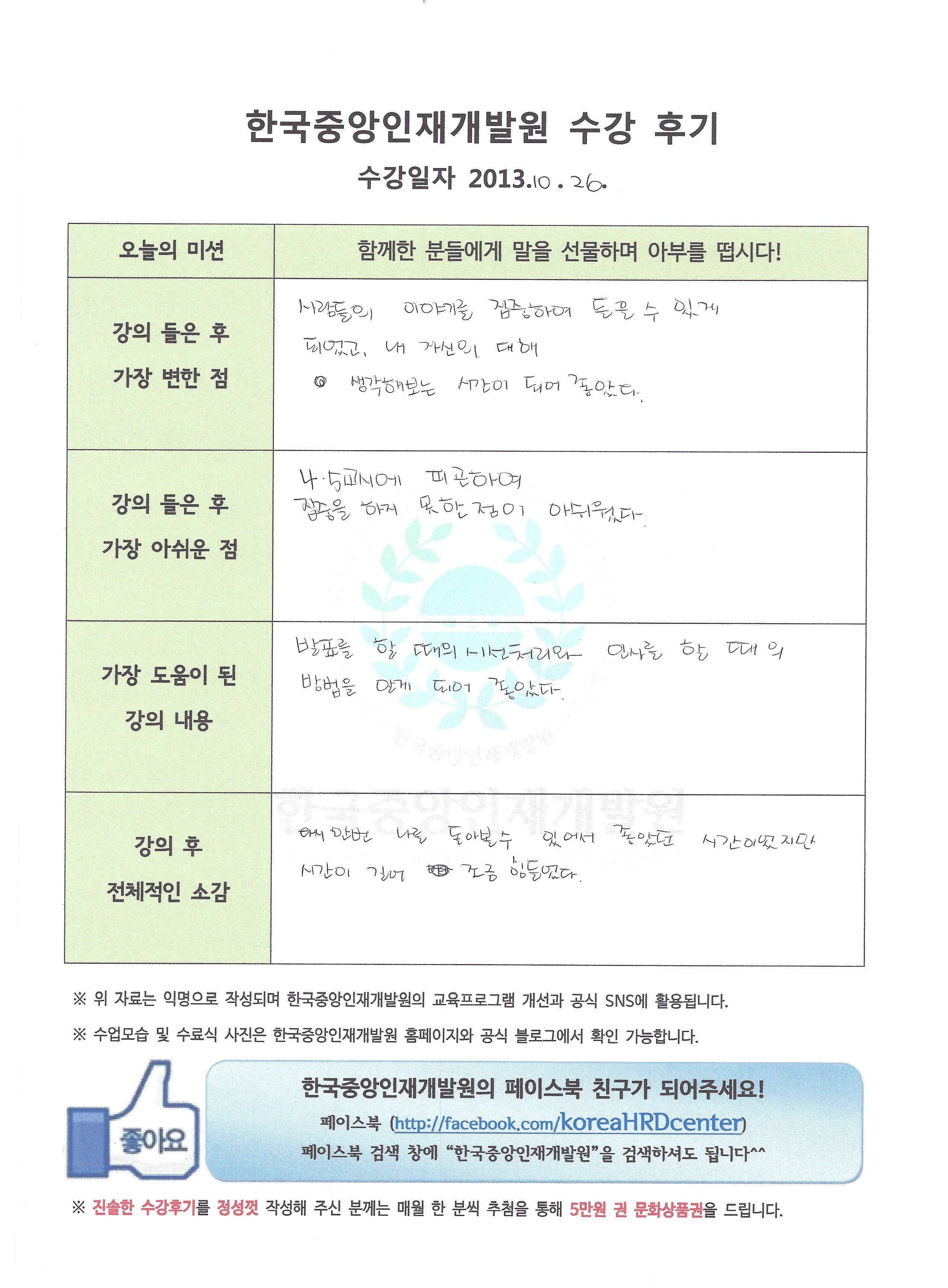 기업연수생들이 정성스럽게 손으로 작성한 진솔한 후기입니다.