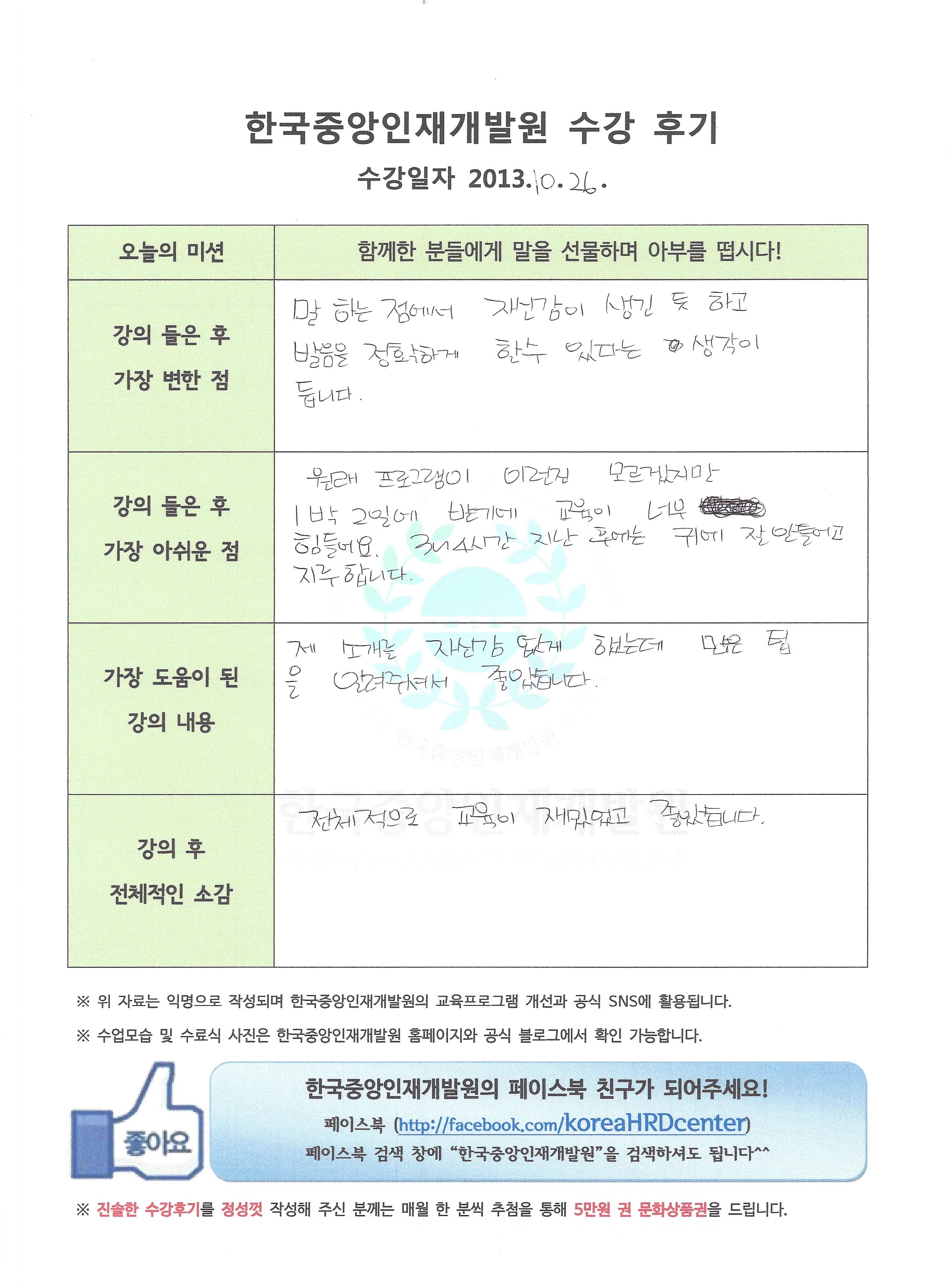 기업연수생들이 정성스럽게 손으로 작성한 진솔한 후기입니다.