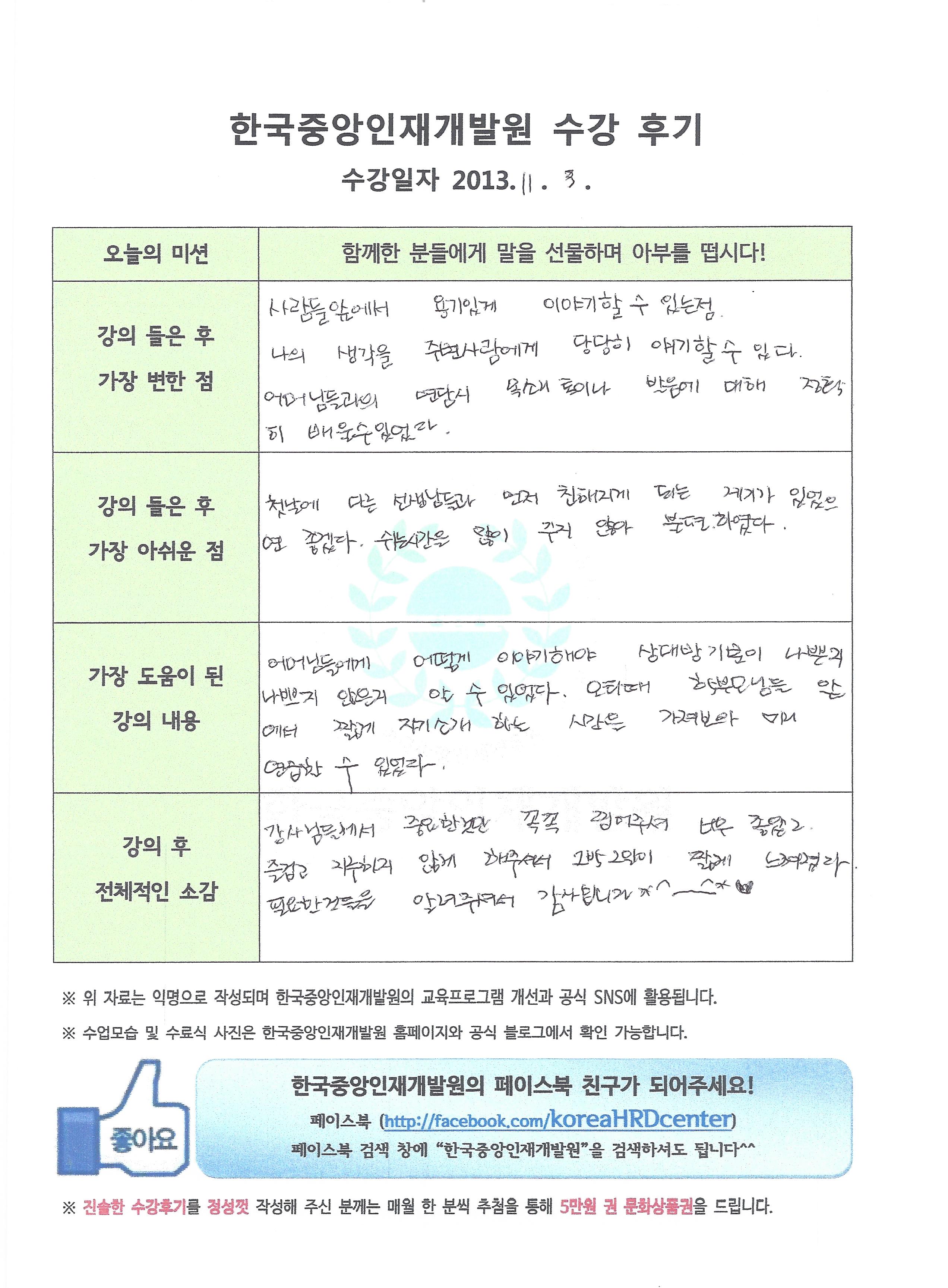 교육후기 자세히 보기 ▶ http://koreahrd5.blog.me