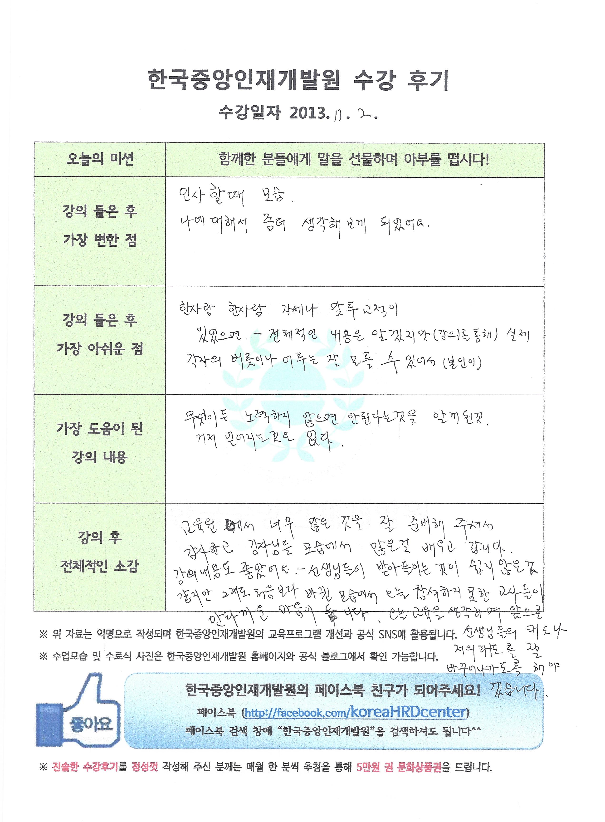 교육후기 자세히 보기 ▶ http://koreahrd5.blog.me