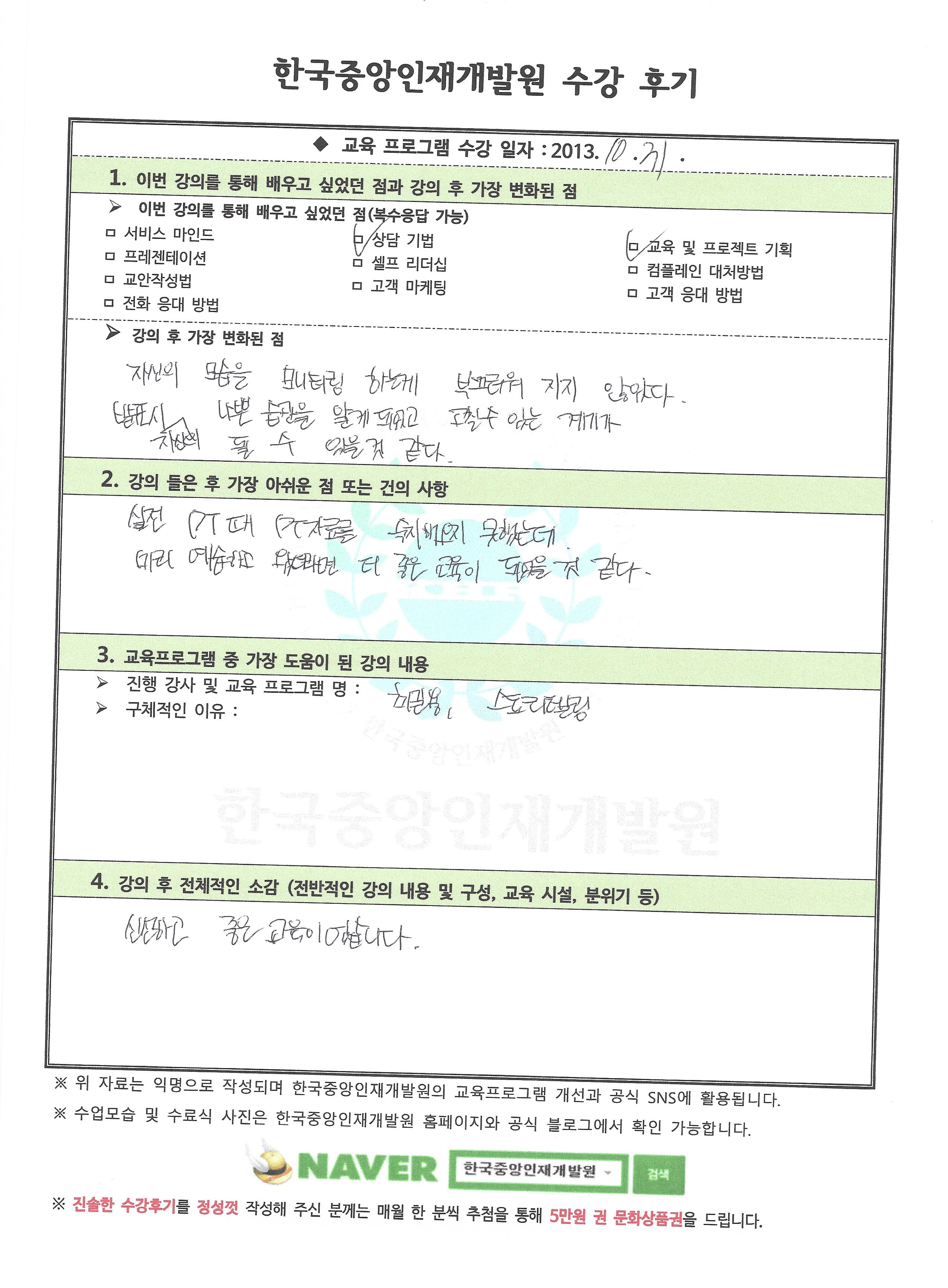 교육후기 자세히 보기 ▶ http://koreahrd5.blog.me