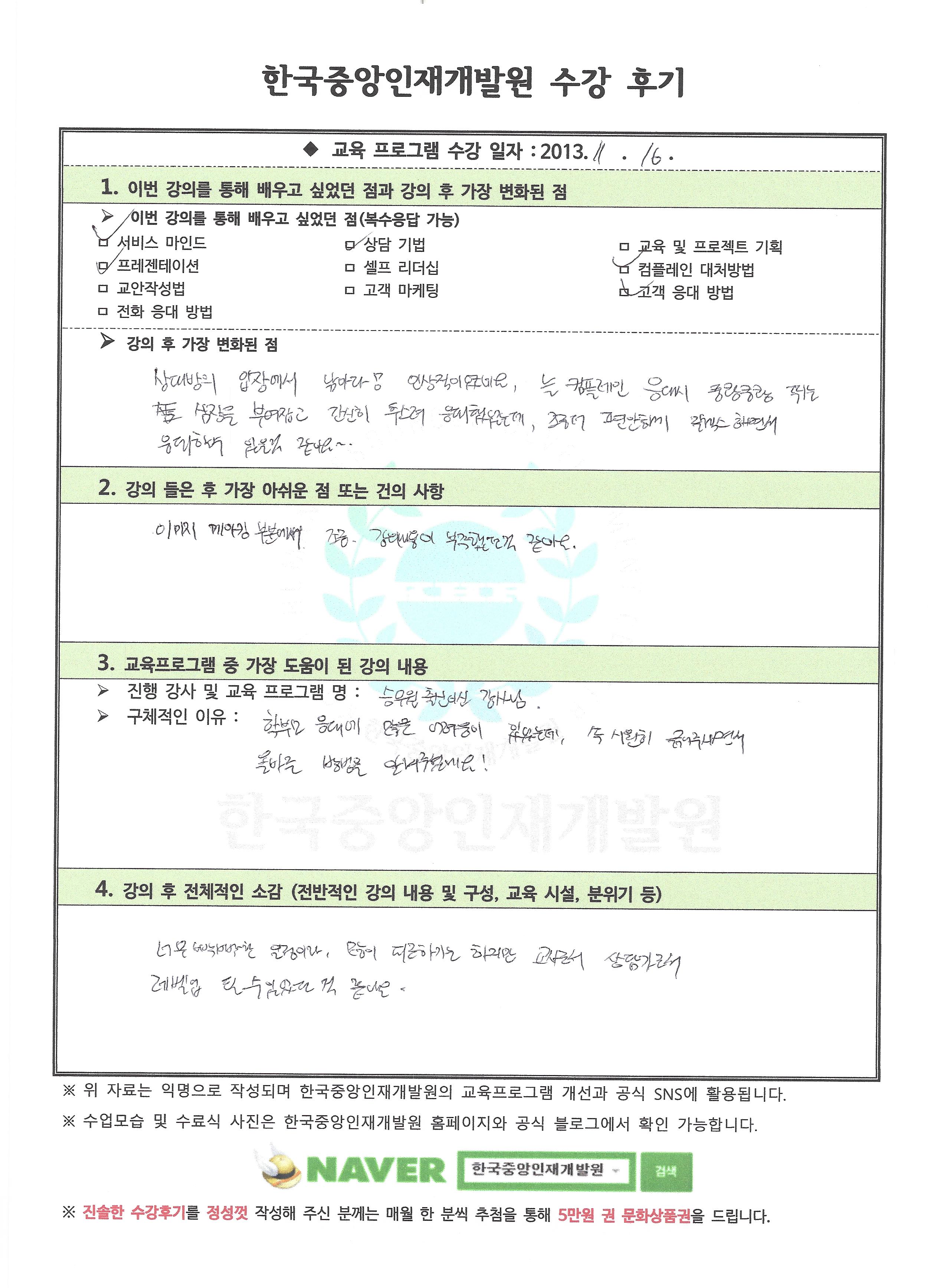 기업연수생들이 정성스럽게 손으로 작성한 진솔한 후기입니다.