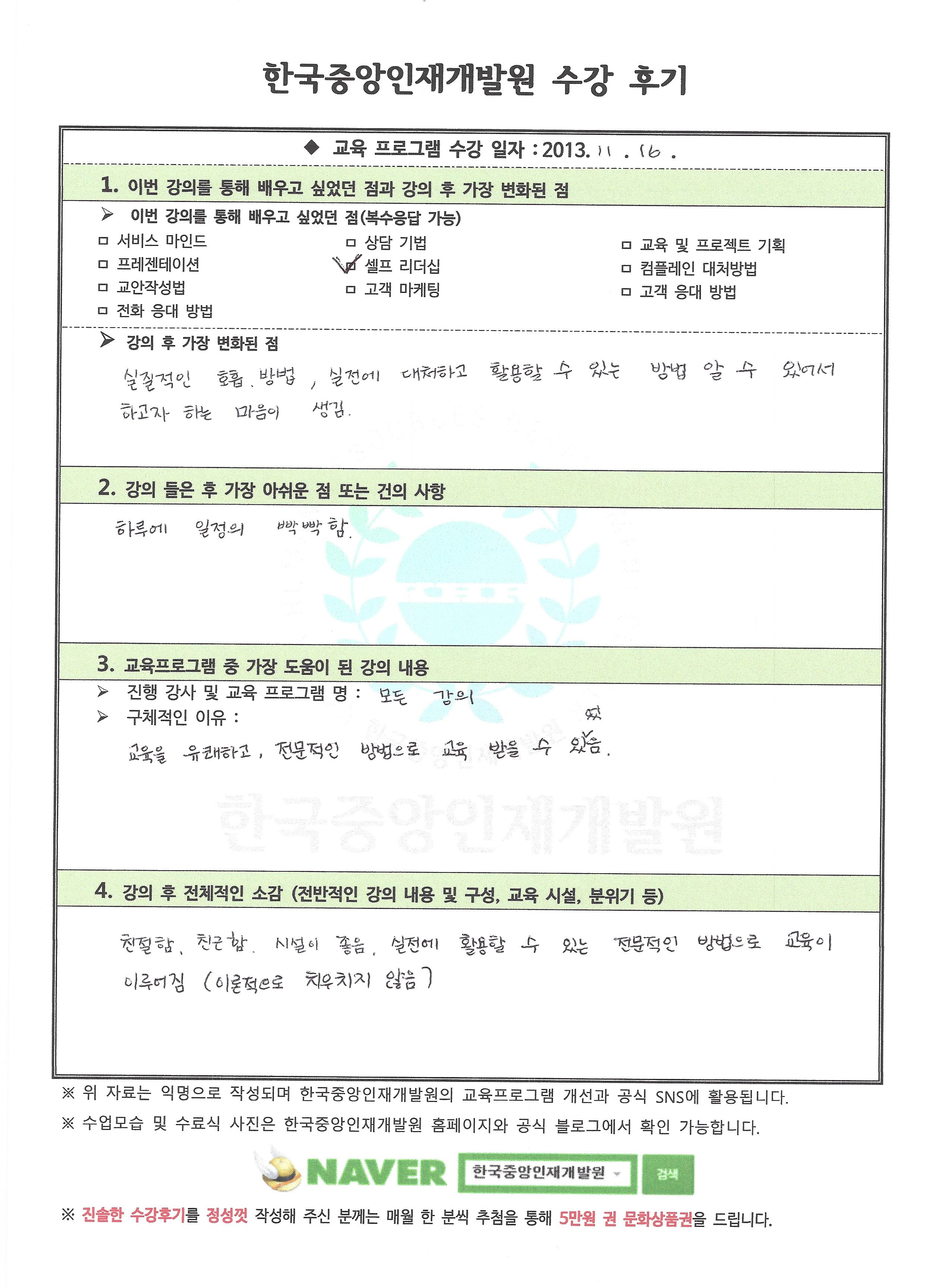 교육후기 자세히 보기 ▶ http://koreahrd5.blog.me