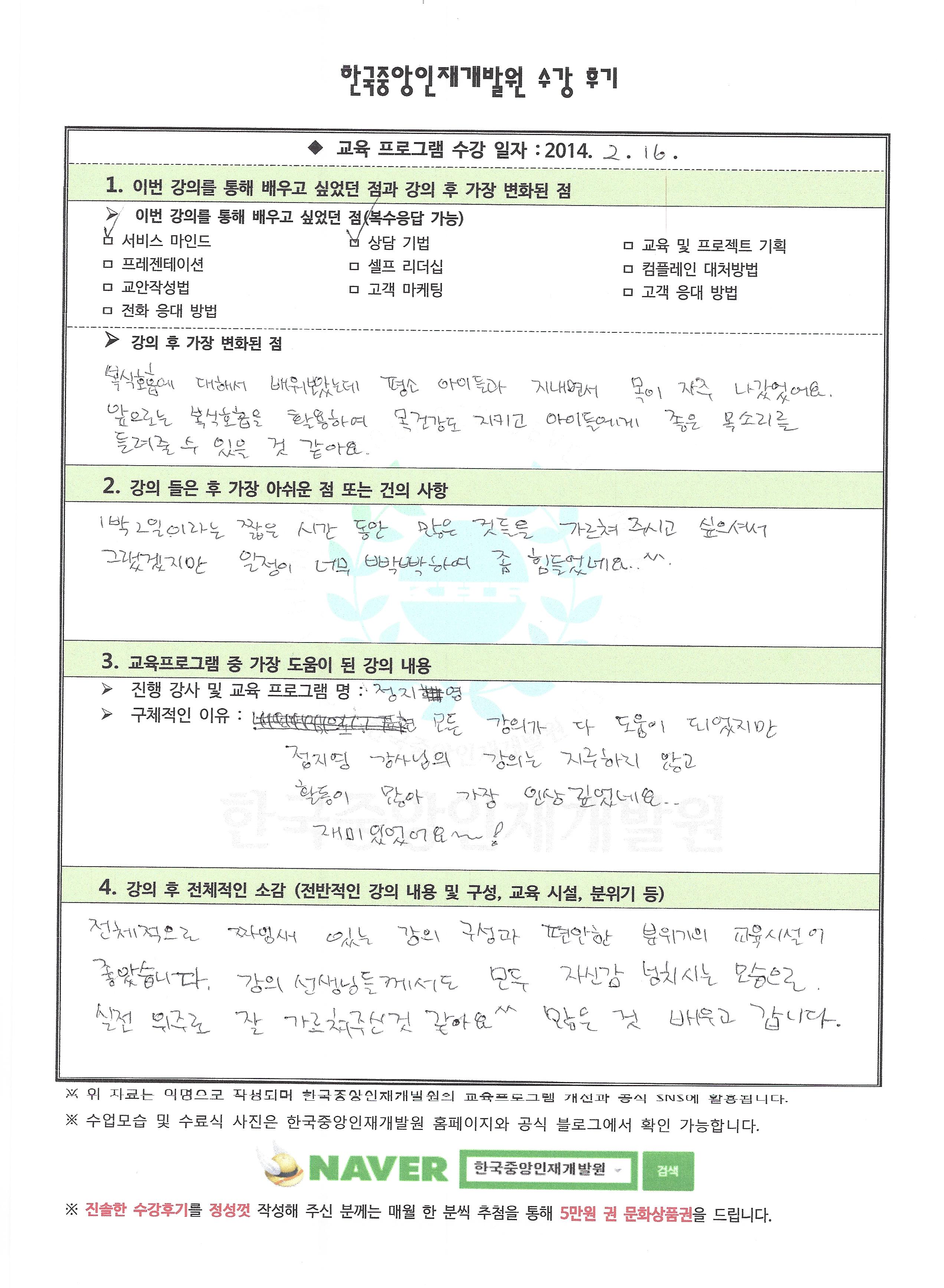 기업연수생들이 정성스럽게 손으로 작성한 진솔한 후기입니다.