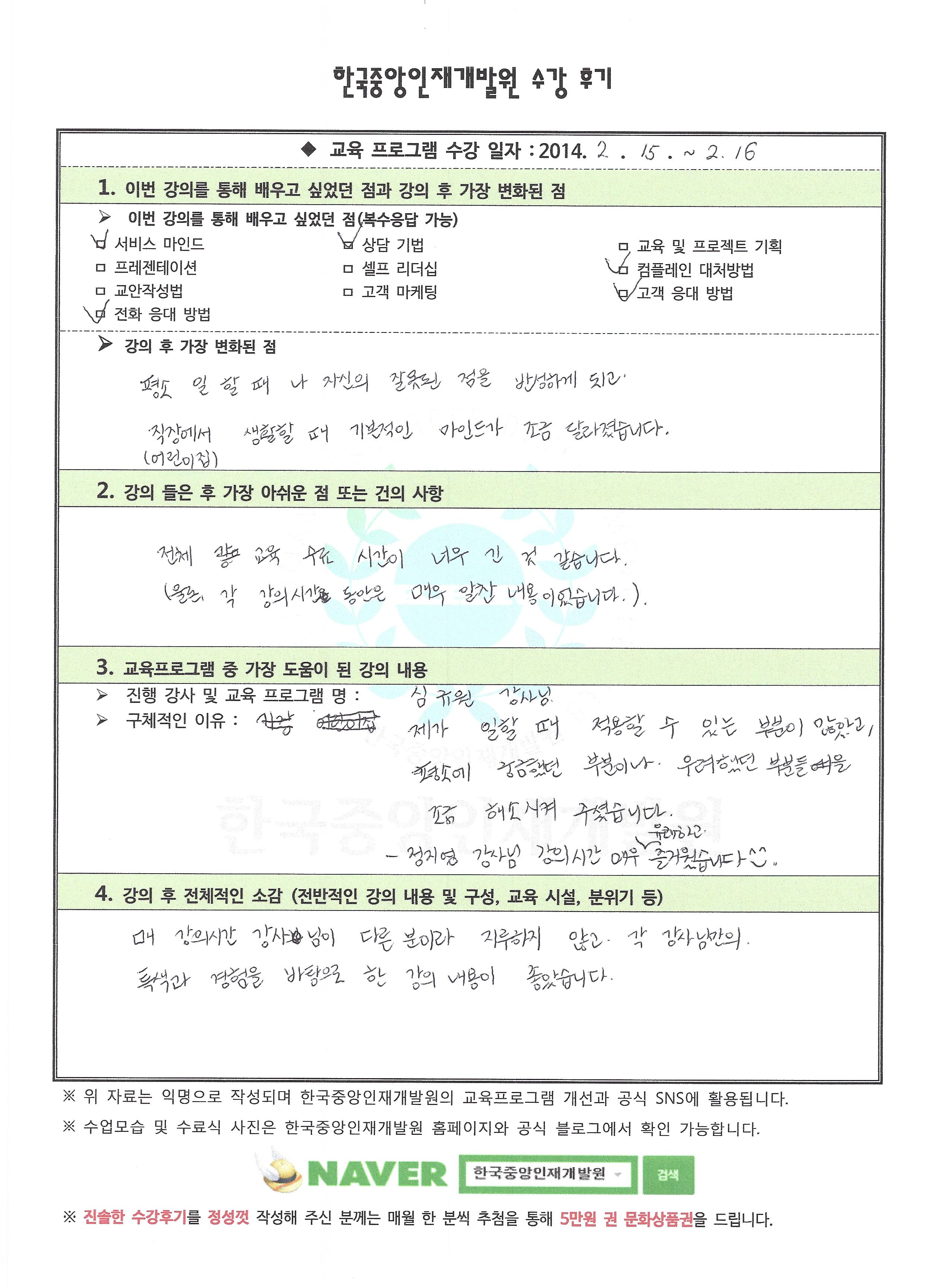 기업연수생들이 정성스럽게 손으로 작성한 진솔한 후기입니다.