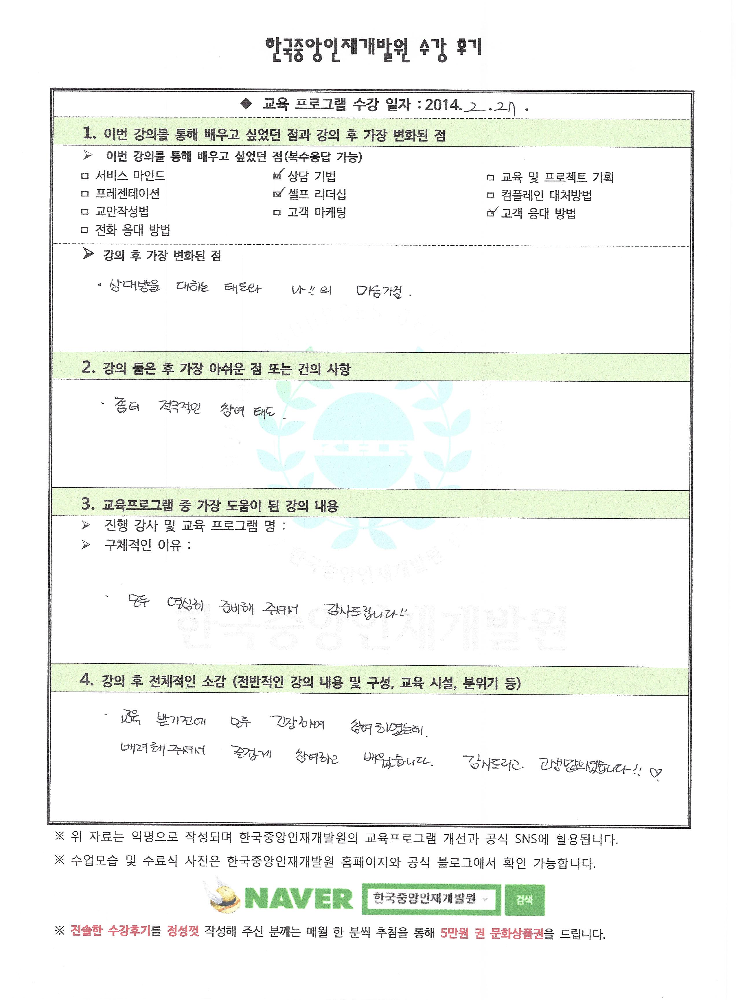 한국중앙인재개발원에서 진행한 기업교육 및 기업연수를 받은