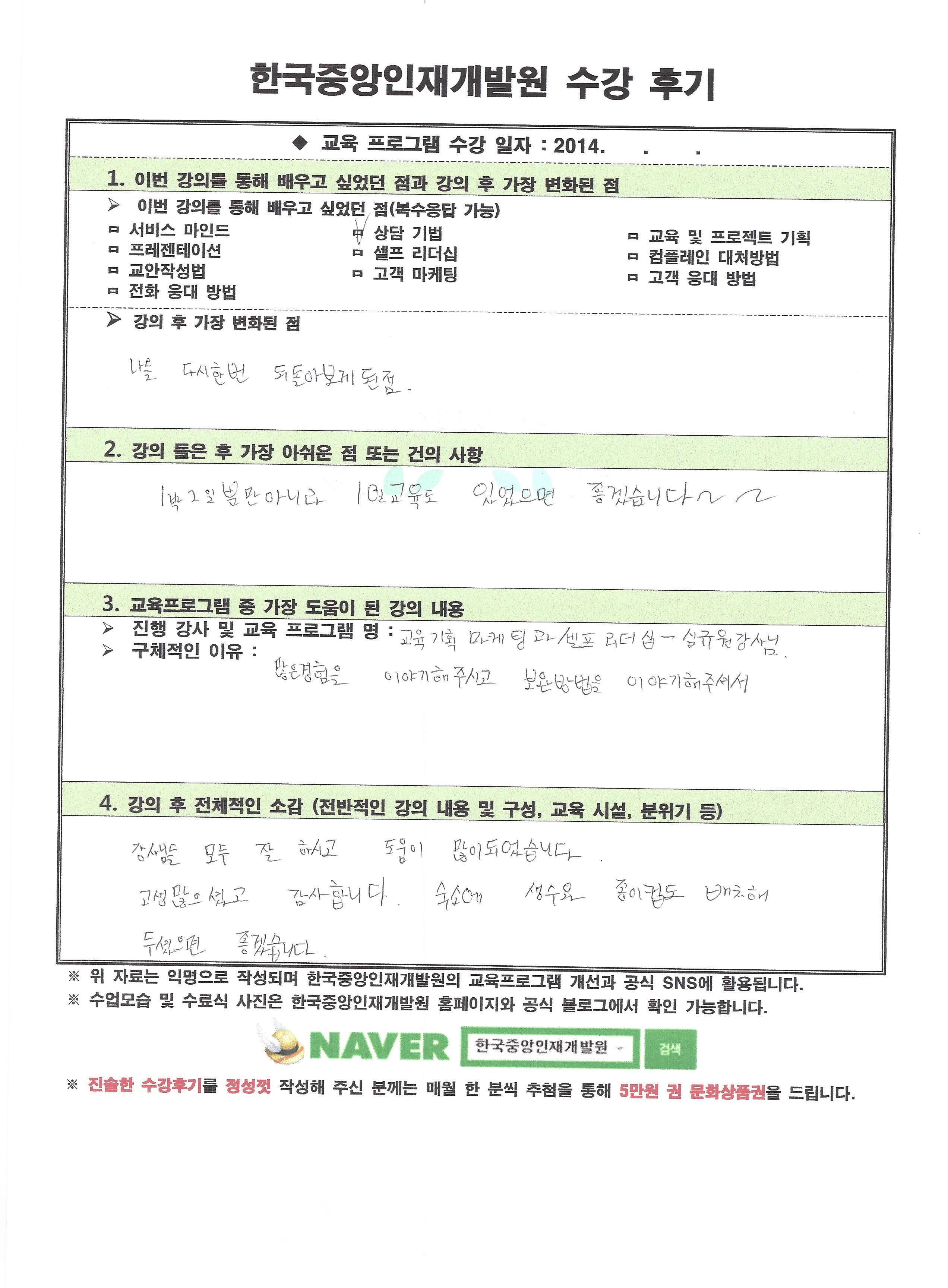 한국중앙인재개발원에서 진행한 기업교육 및 기업연수를 받은