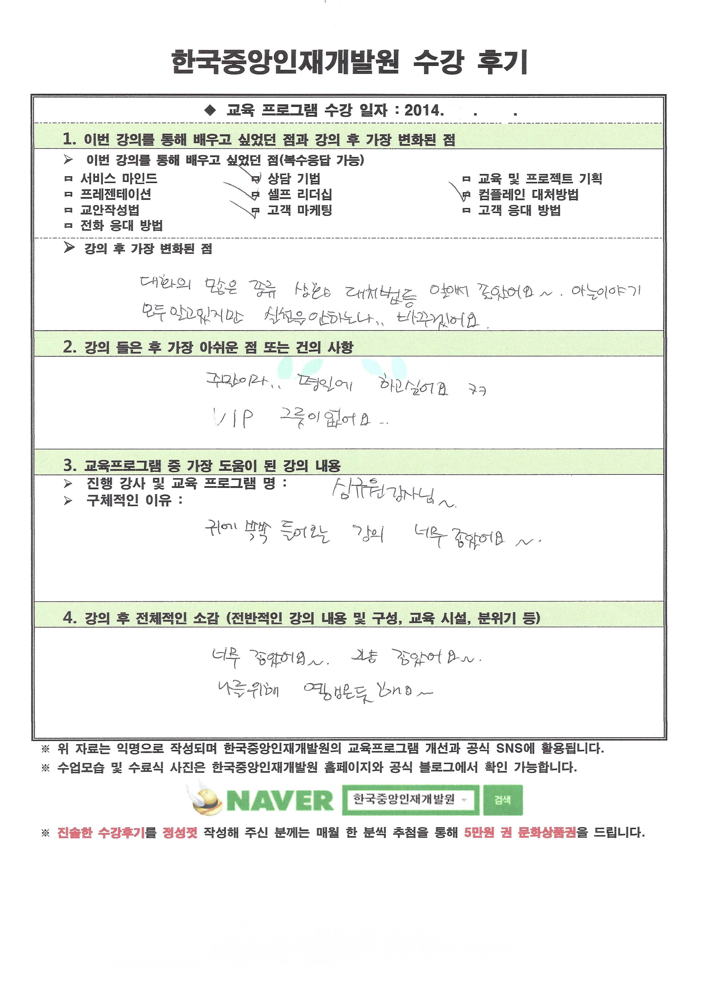 한국중앙인재개발원에서 진행한 기업교육 및 기업연수를 받은