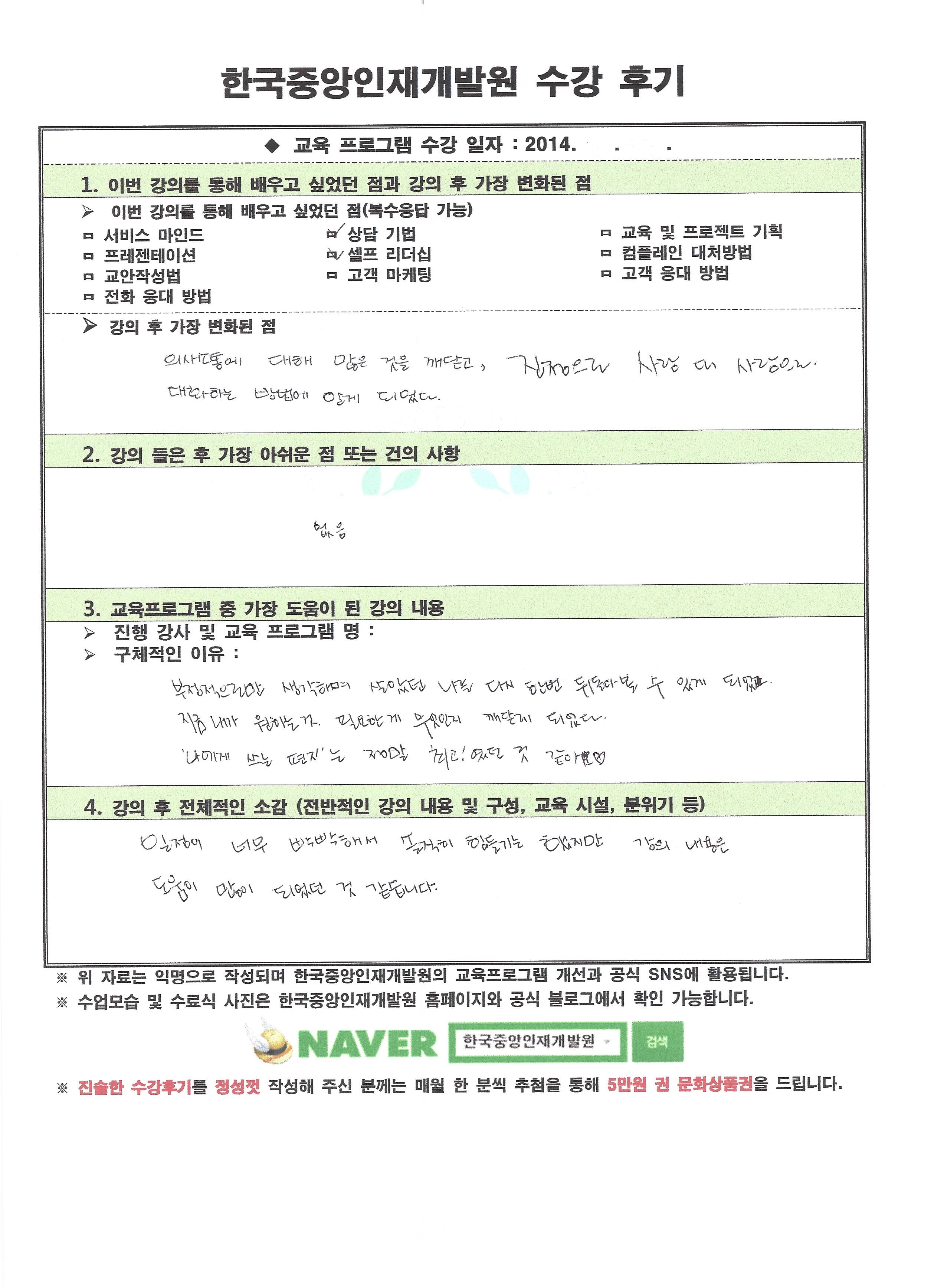 기업연수생들이 정성스럽게 손으로 작성한 진솔한 후기입니다.