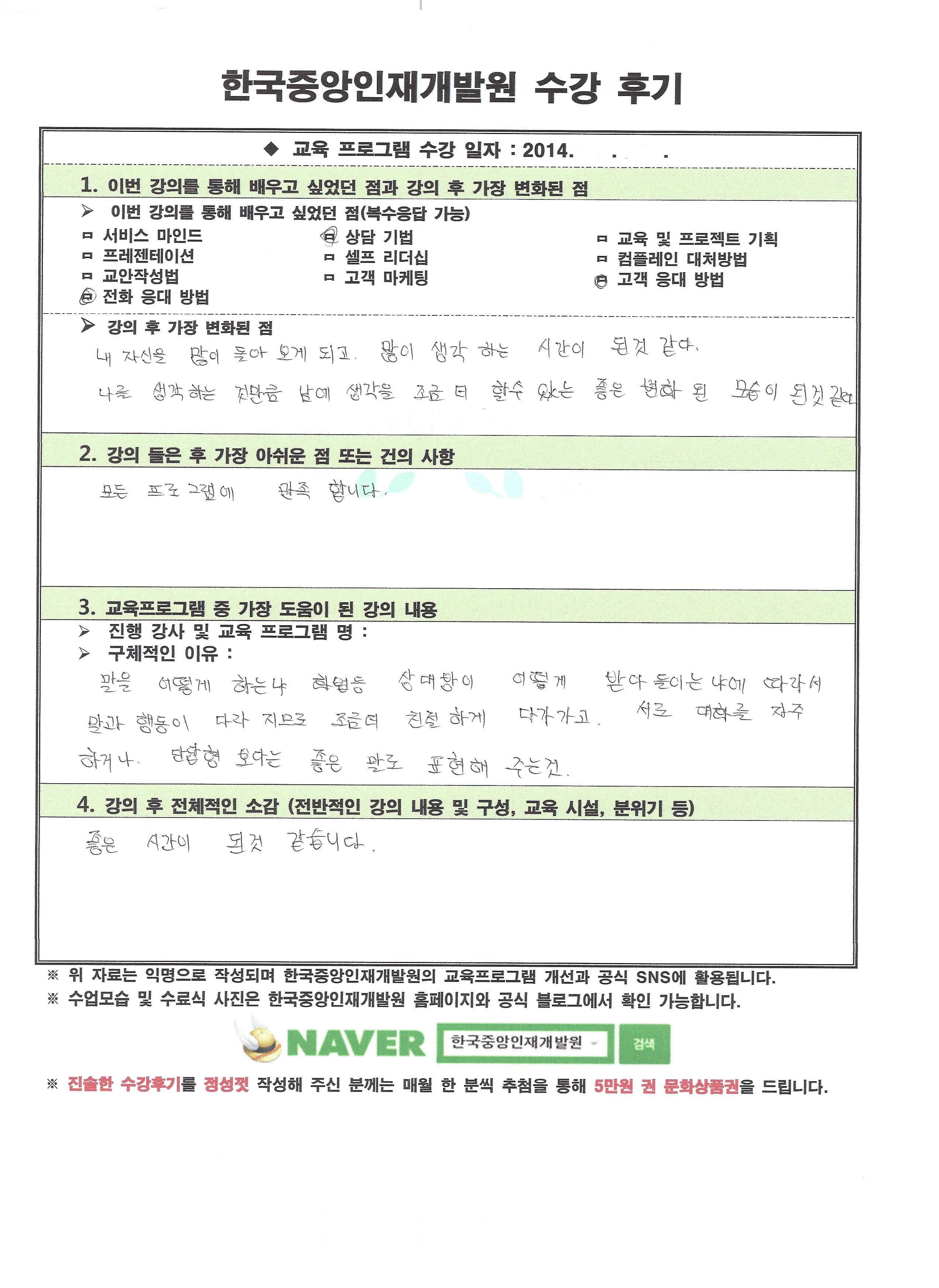 한국중앙인재개발원에서 진행한 기업교육 및 기업연수를 받은
