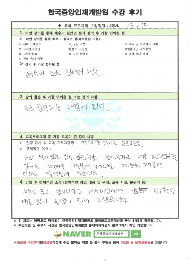 기업연수생들이 정성스럽게 손으로 작성한 진솔한 후기입니다.
