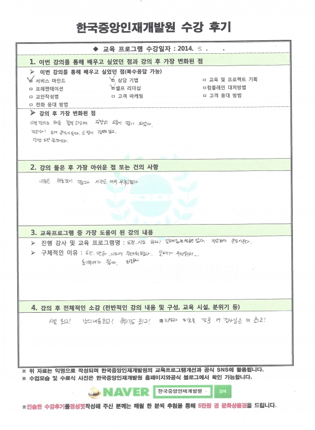 기업연수생들이 정성스럽게 손으로 작성한 진솔한 후기입니다.