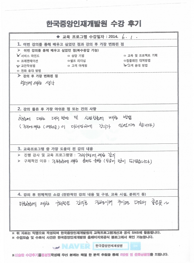 한국중앙인재개발원에서 진행한 기업교육 및 기업연수를 받은