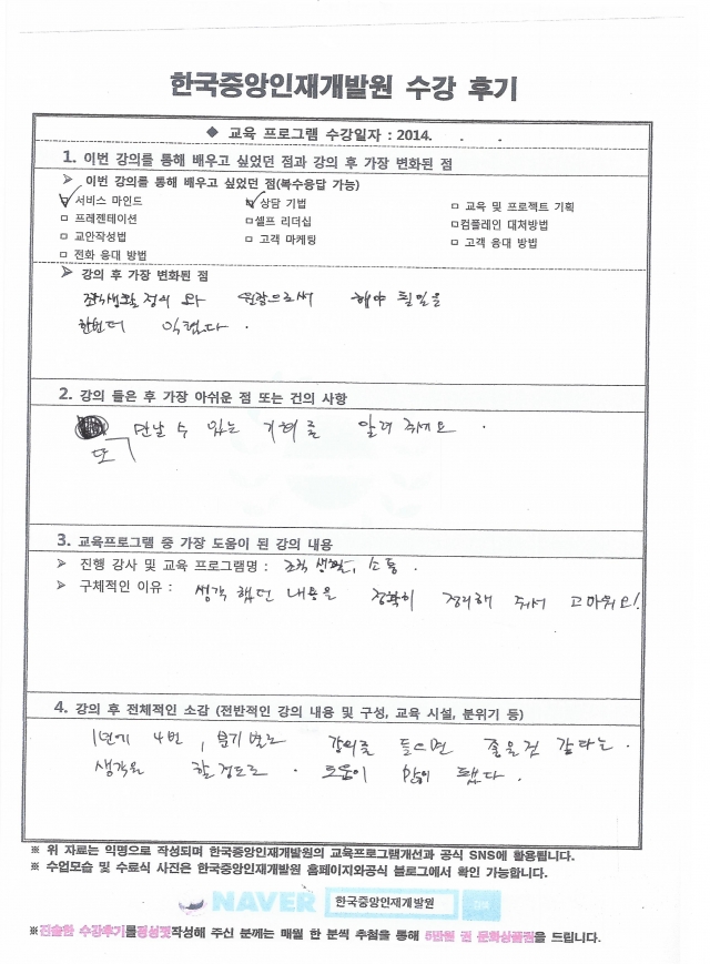기업연수생들이 정성스럽게 손으로 작성한 진솔한 후기입니다.