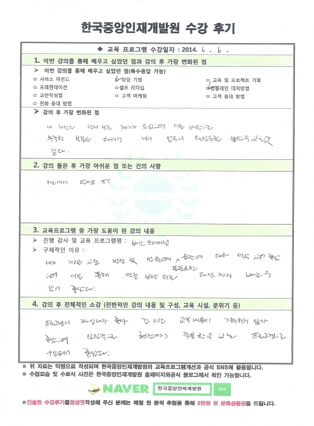 기업연수생들이 정성스럽게 손으로 작성한 진솔한 후기입니다.