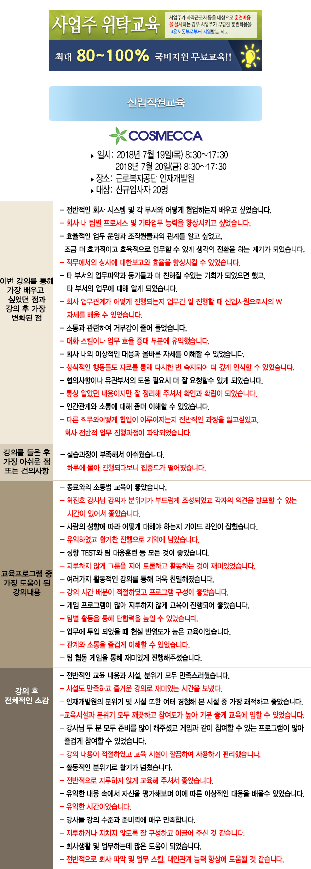 한국중앙에셋 (Korea Centeral Asset) I 사업자등록번호 : 111-87-00714 I 교육문의 대표번호: 1600-7992 I E-mail : koreahrd5@naver.com 서울시 강남구 도곡동 467-6 대림아크로텔 C동 1402호 I Copyright ⓒ 2017 Korea HRD Center. All rights reserved.