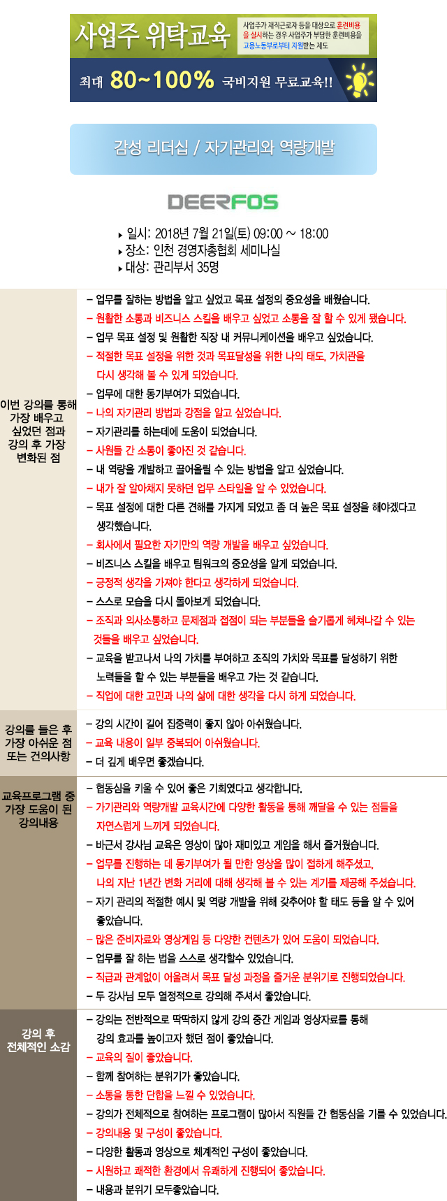 2018. 07. 21 "디어포스" 관리부서 교육