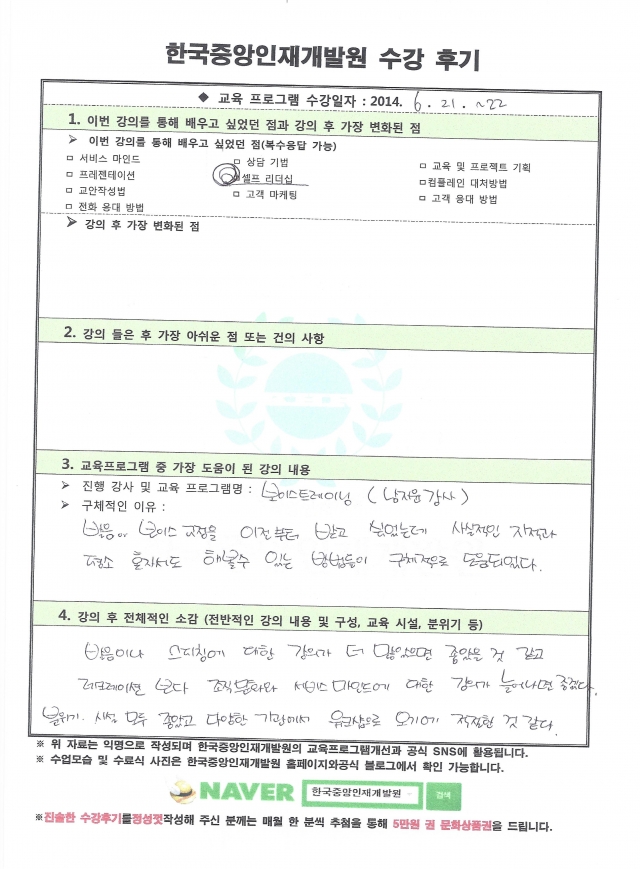 기업연수생들이 정성스럽게 손으로 작성한 진솔한 후기입니다.