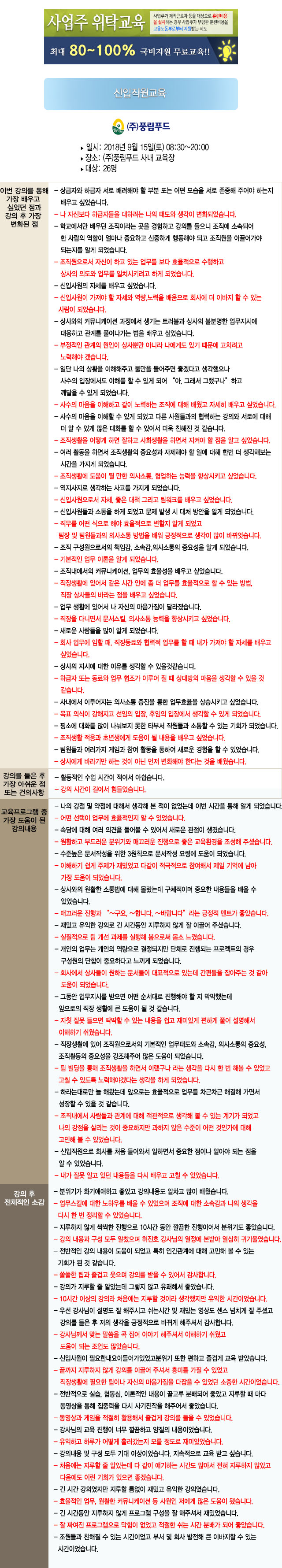 2018. 09. 15 "풍림푸드" 신입직원 교육