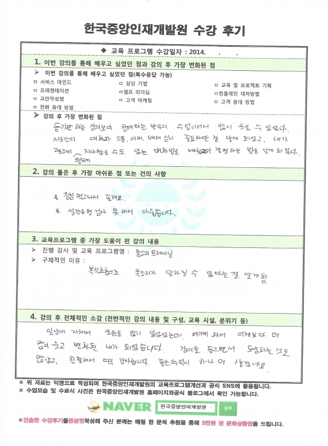 기업연수생들이 정성스럽게 손으로 작성한 진솔한 후기입니다.