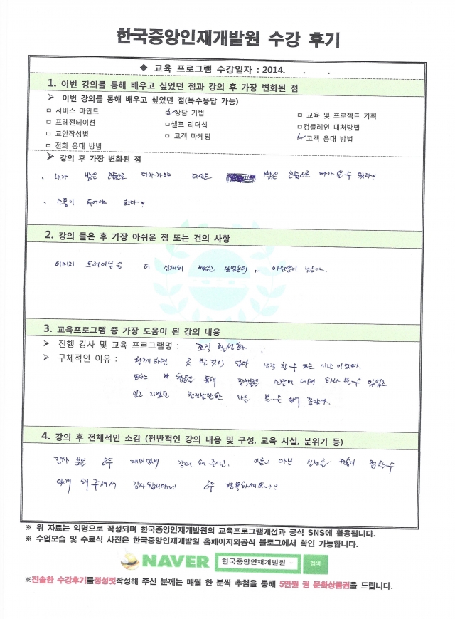 기업연수생들이 정성스럽게 손으로 작성한 진솔한 후기입니다.