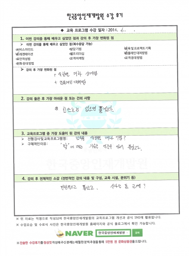 기업연수생들이 정성스럽게 손으로 작성한 진솔한 후기입니다.