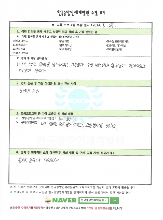 기업연수생들이 정성스럽게 손으로 작성한 진솔한 후기입니다.