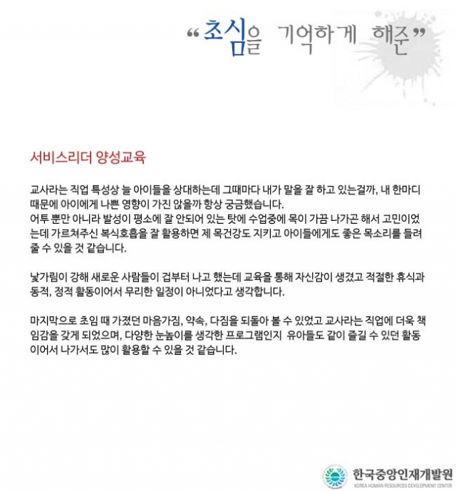 초심을 기억하게 해준 교육