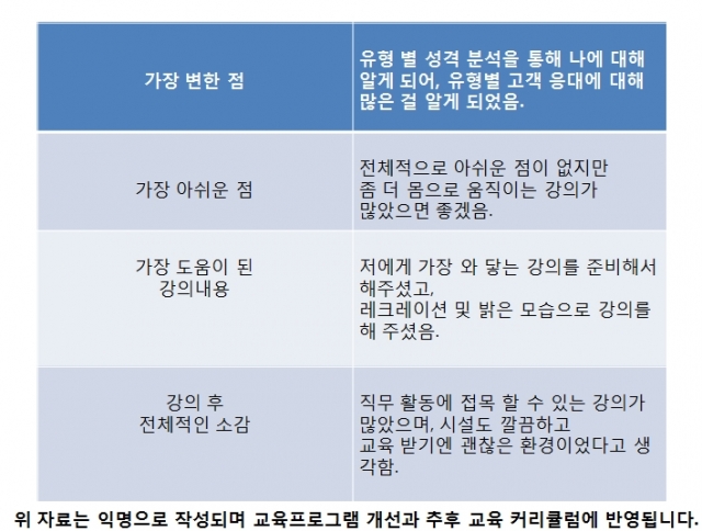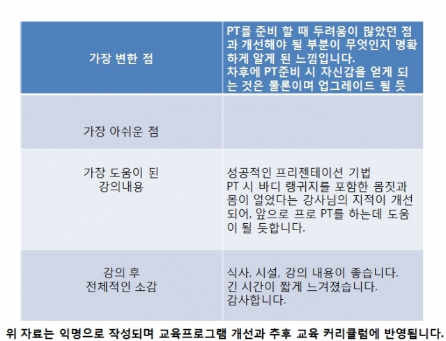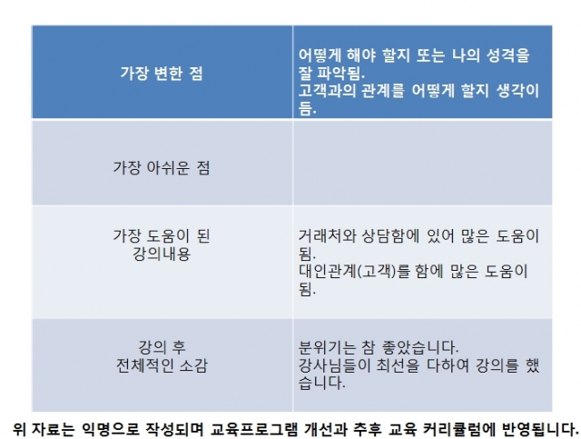 교육프로그램 중 가장 도움이 된 강의 내용