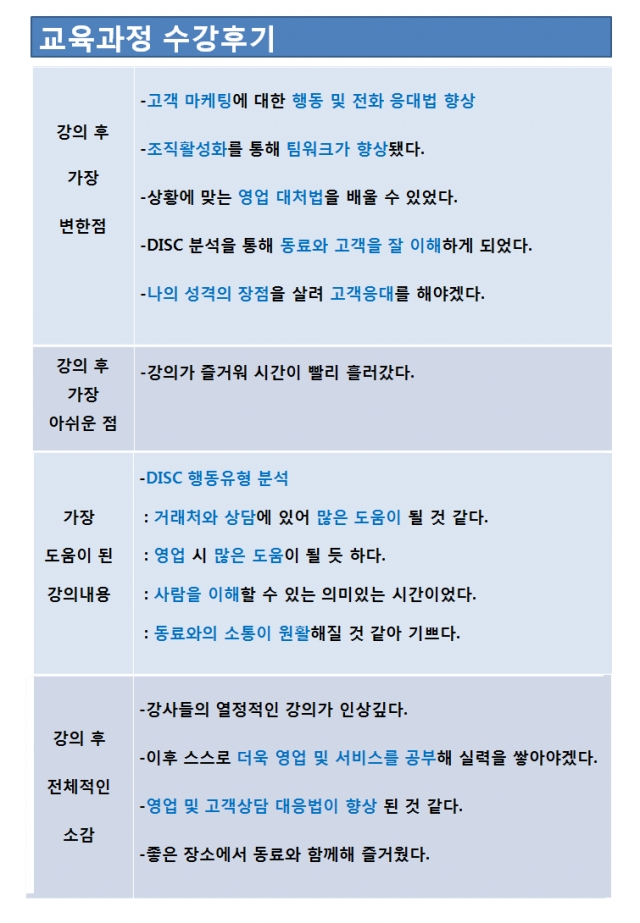 강의 후 전체적인 소감 (전반적인 강의 내용 및 구성, 교육 시설, 분위기 등)