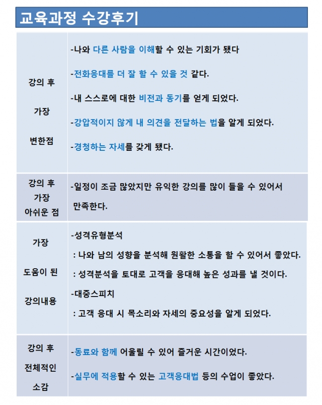강의 후 전체적인 소감 (전반적인 강의 내용 및 구성, 교육 시설, 분위기 등)