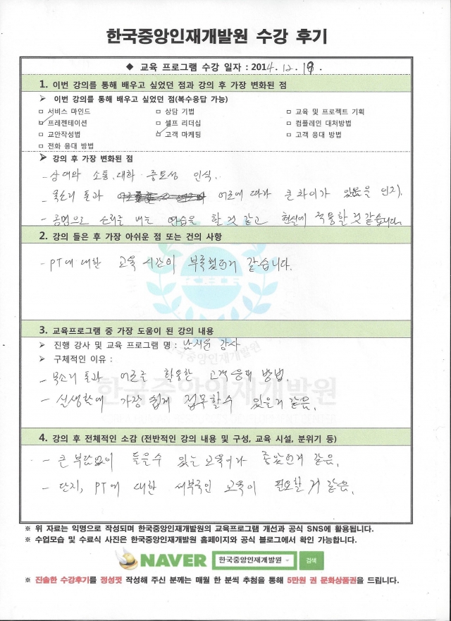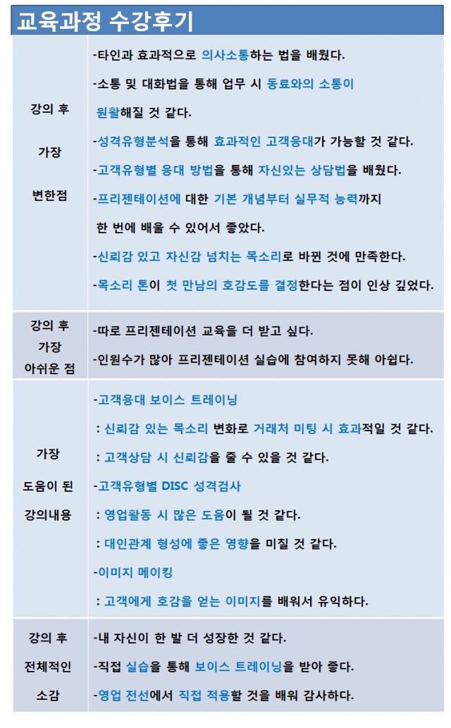 교육프로그램 중 가장 도움이 된 강의 내용