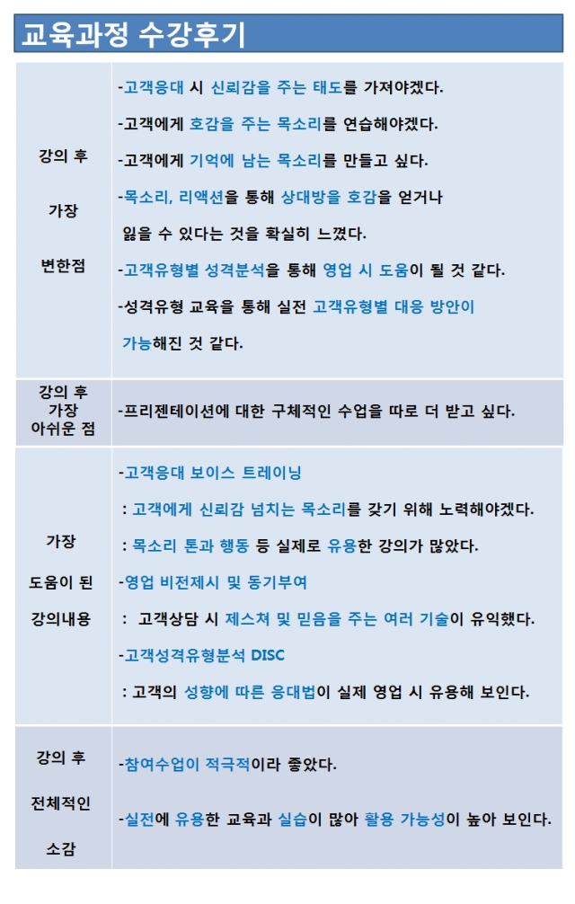 교육프로그램 중 가장 도움이 된 강의 내용