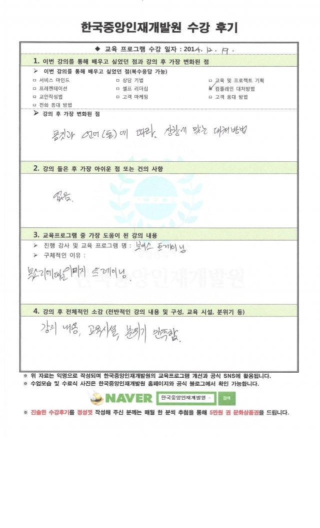 한국중앙에셋 (Korea Centeral Asset) I 사업자등록번호 : 111-87-00714 I 교육문의 대표번호: 1600-7992 I E-mail : koreahrd5@naver.com