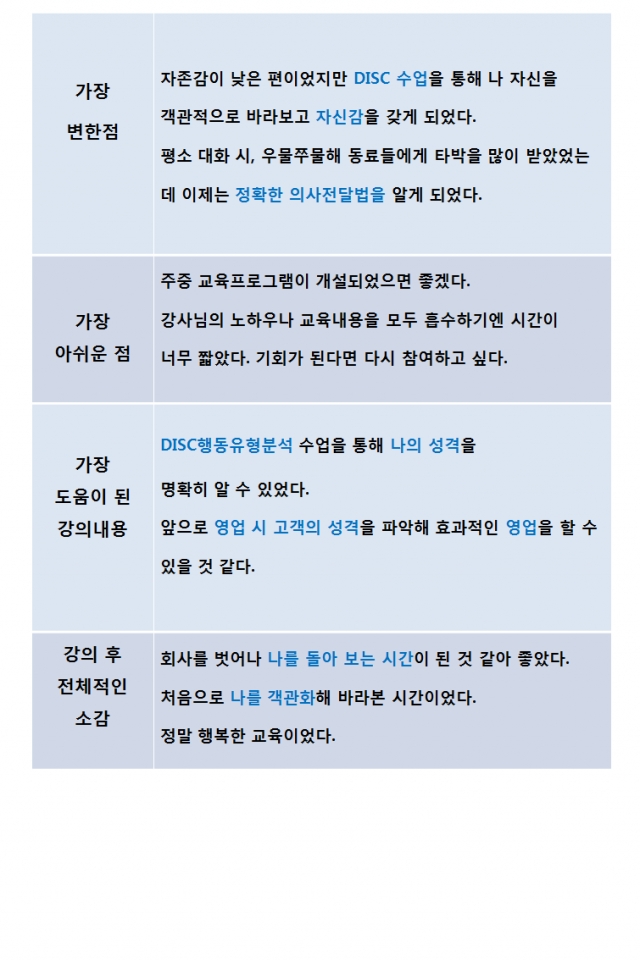강의 후 전체적인 소감 (전반적인 강의 내용 및 구성, 교육 시설, 분위기 등)