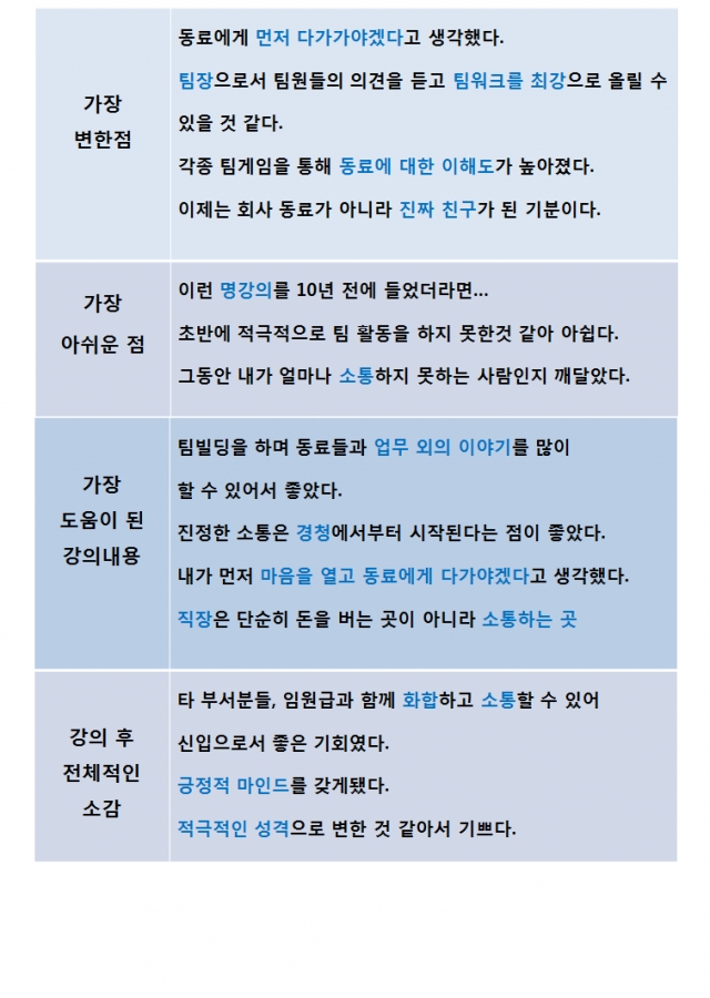 교육프로그램 중 가장 도움이 된 강의 내용