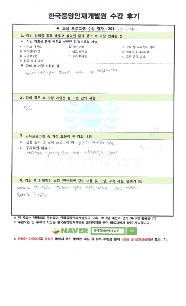 한국중앙에셋 (Korea Centeral Asset) I 사업자등록번호 : 111-87-00714 I 교육문의 대표번호: 1600-7992 I E-mail : koreahrd5@naver.com