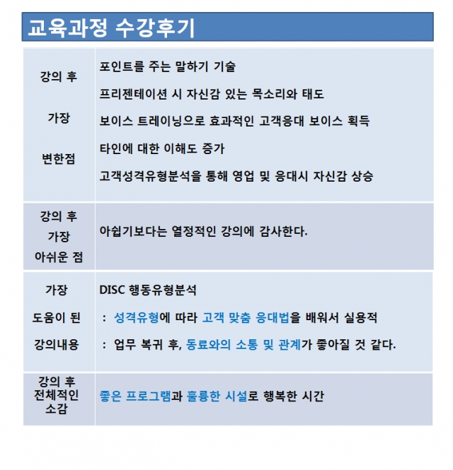교육프로그램 중 가장 도움이 된 강의 내용